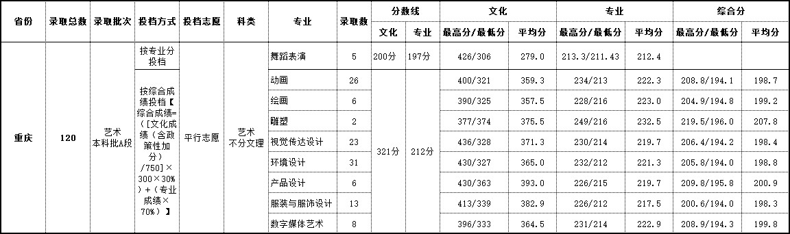 2018年 重庆艺术类录取情况