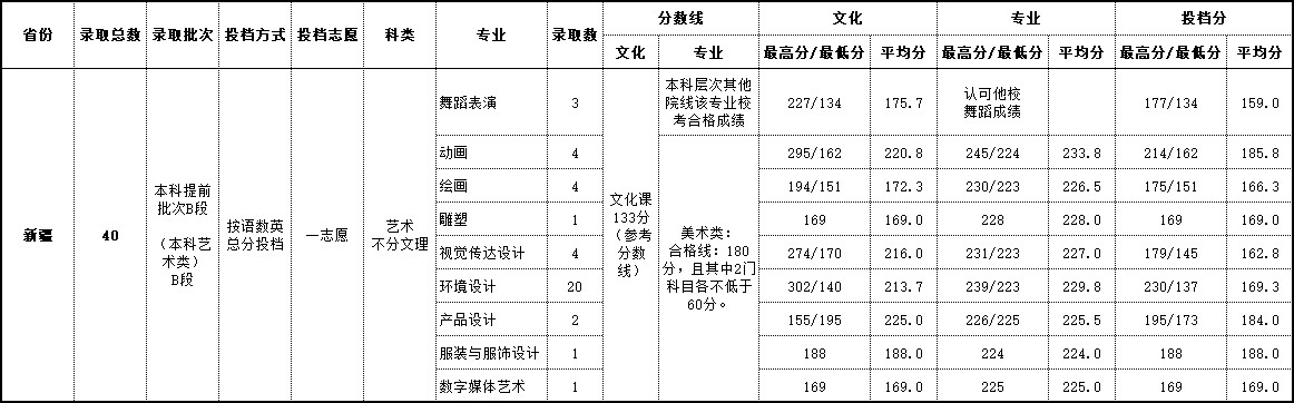 2018年 新疆艺术类录取情况