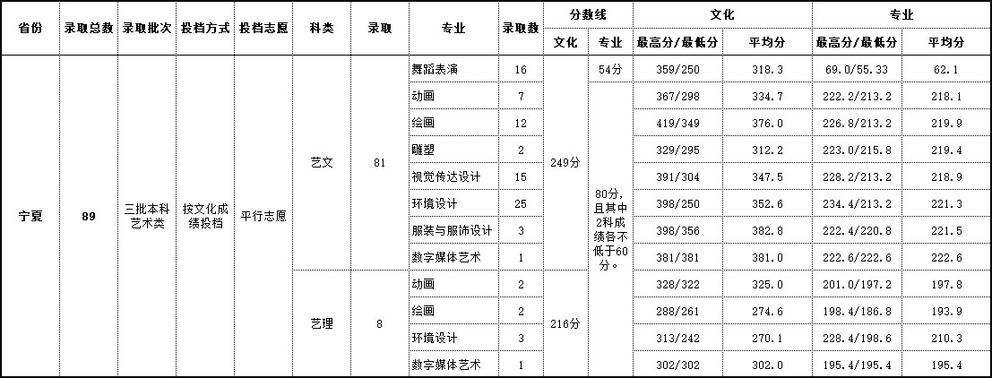 2018年 宁夏艺术类录取情况