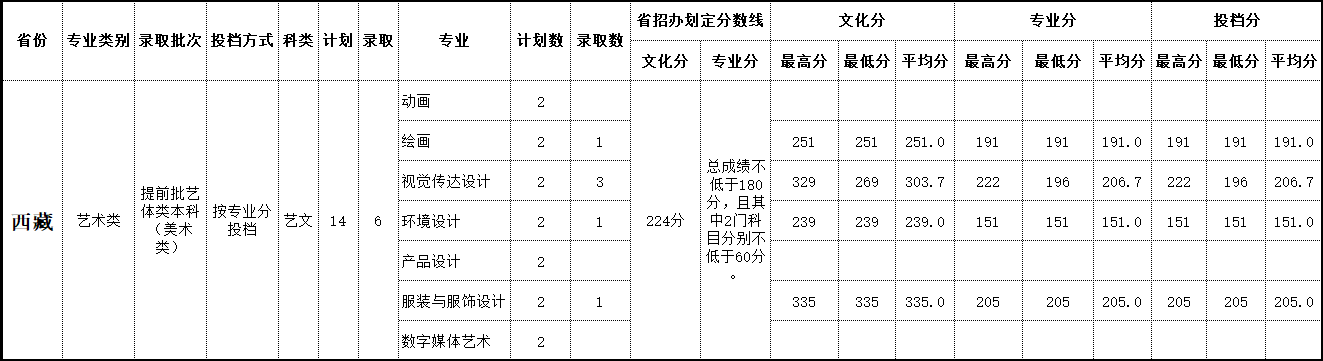 2019年 西藏录取情况