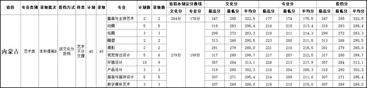 2019年 内蒙古录取情况