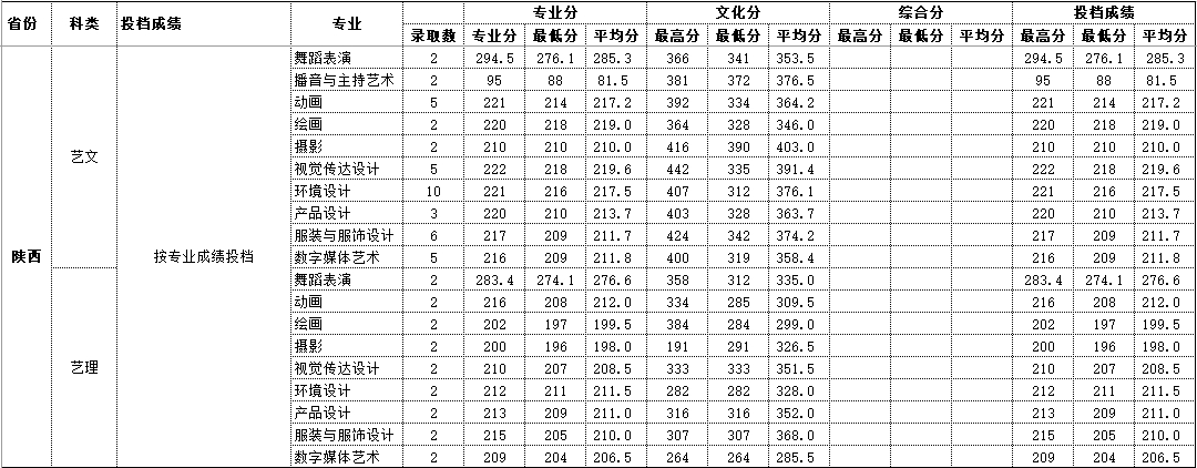 2020年陕西 艺术类录取情况