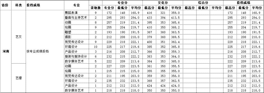 2020年河南 艺术类录取情况