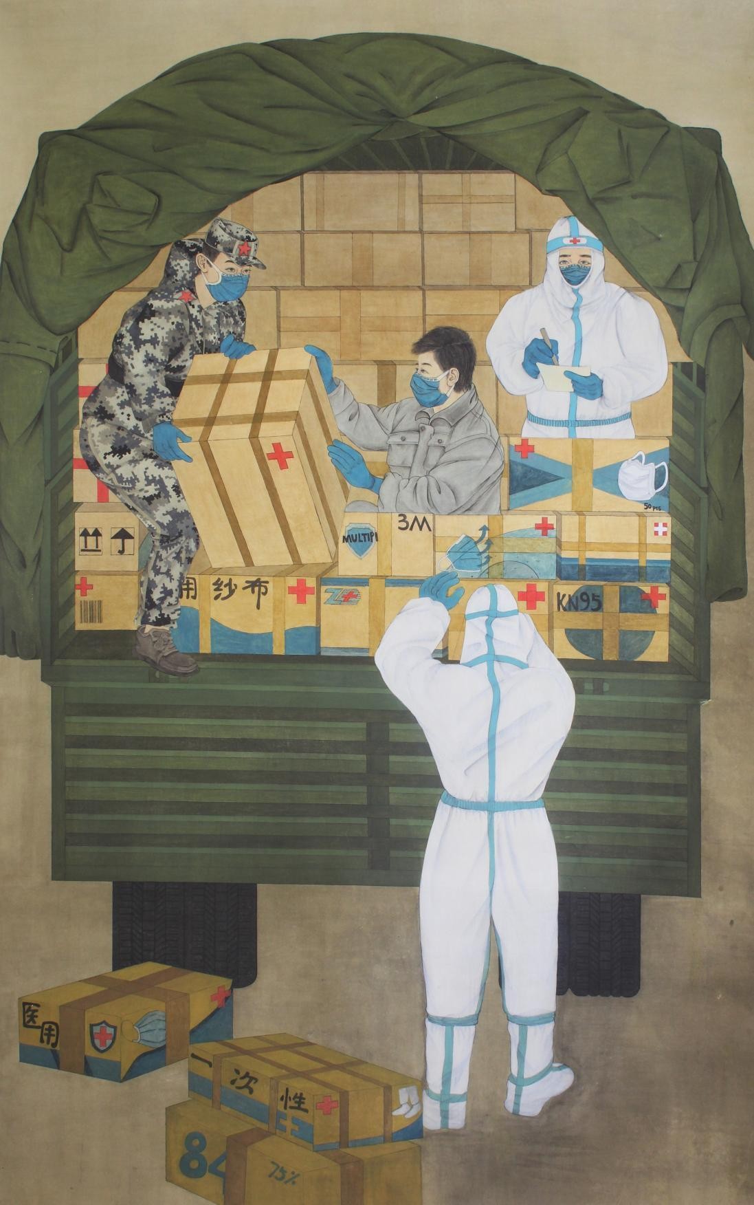《人民守护者》 黎廷可 水彩 75cm×75cm 2023年