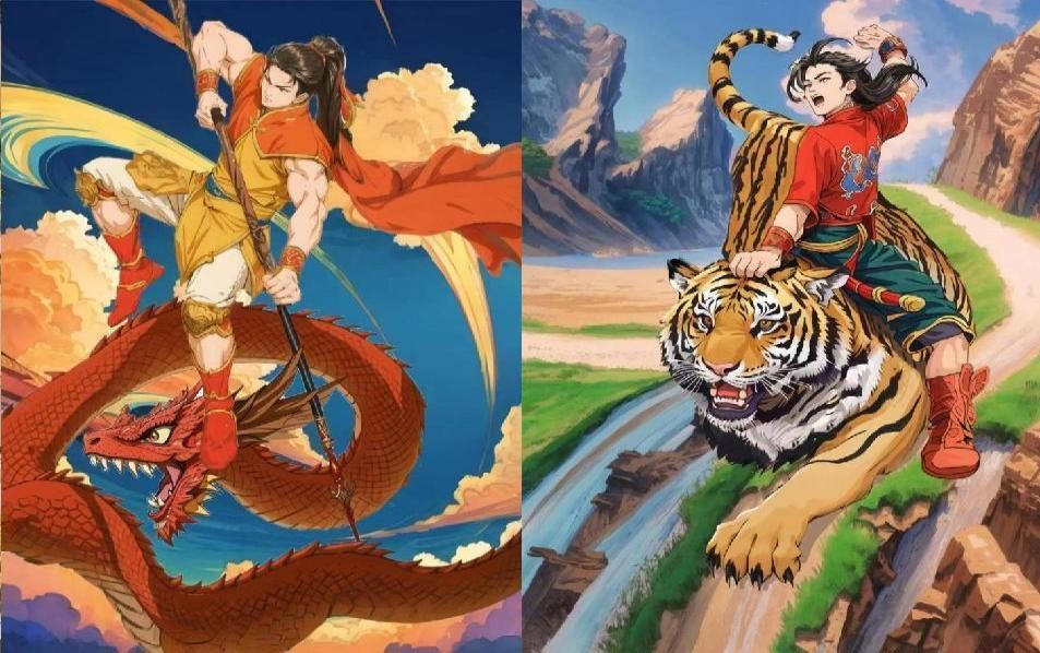 《布洛陀顶天》 黄丽金 板绘a42023年 《莫一大王飞天》 黄丽金 板绘a42023年