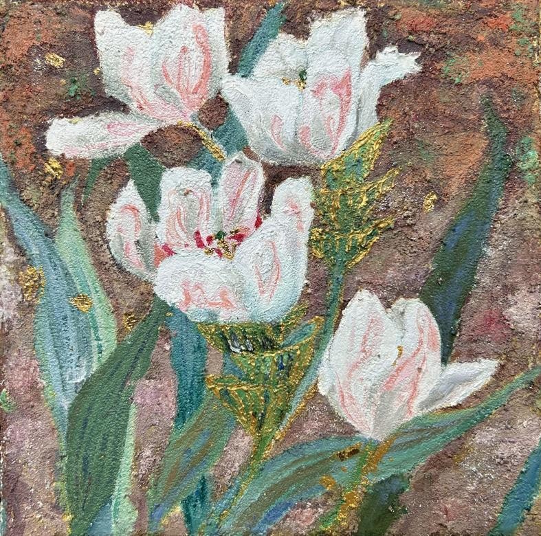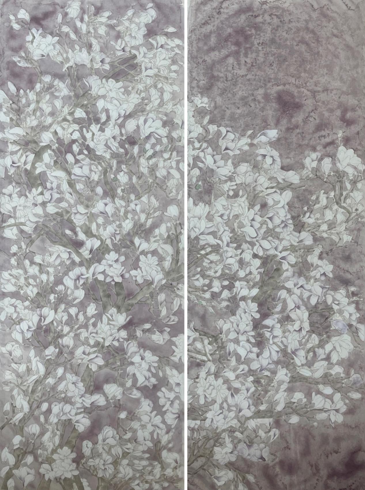 《花觅》之杏花 柯钿钿岩彩 40cmX60cm 2023年