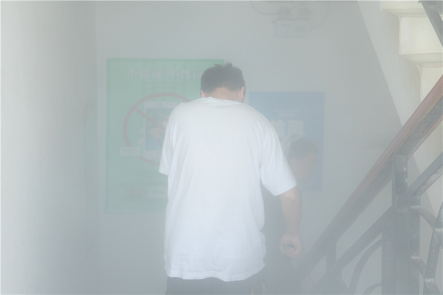党委书记张阳下达演练指令后,安全疏散演练紧急警报响起,在班主任和宿管工作人员的引导下,同学们立即有序疏散,有序、快速疏散到指定位置。