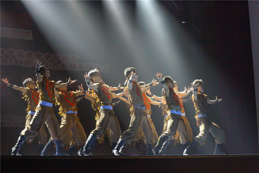 我校致力于将党史学习教育和大学生思想政治教育进行融合创新,与大学生学习生活紧密结合,充分发掘我校学科专业优势,将党史学习教育与学科特色有机结合。本次教育学院通过开展红色主题舞蹈晚会向建党100周年献礼,推动党史学习教育走深走实,不断从党史中汲取奋进力量。