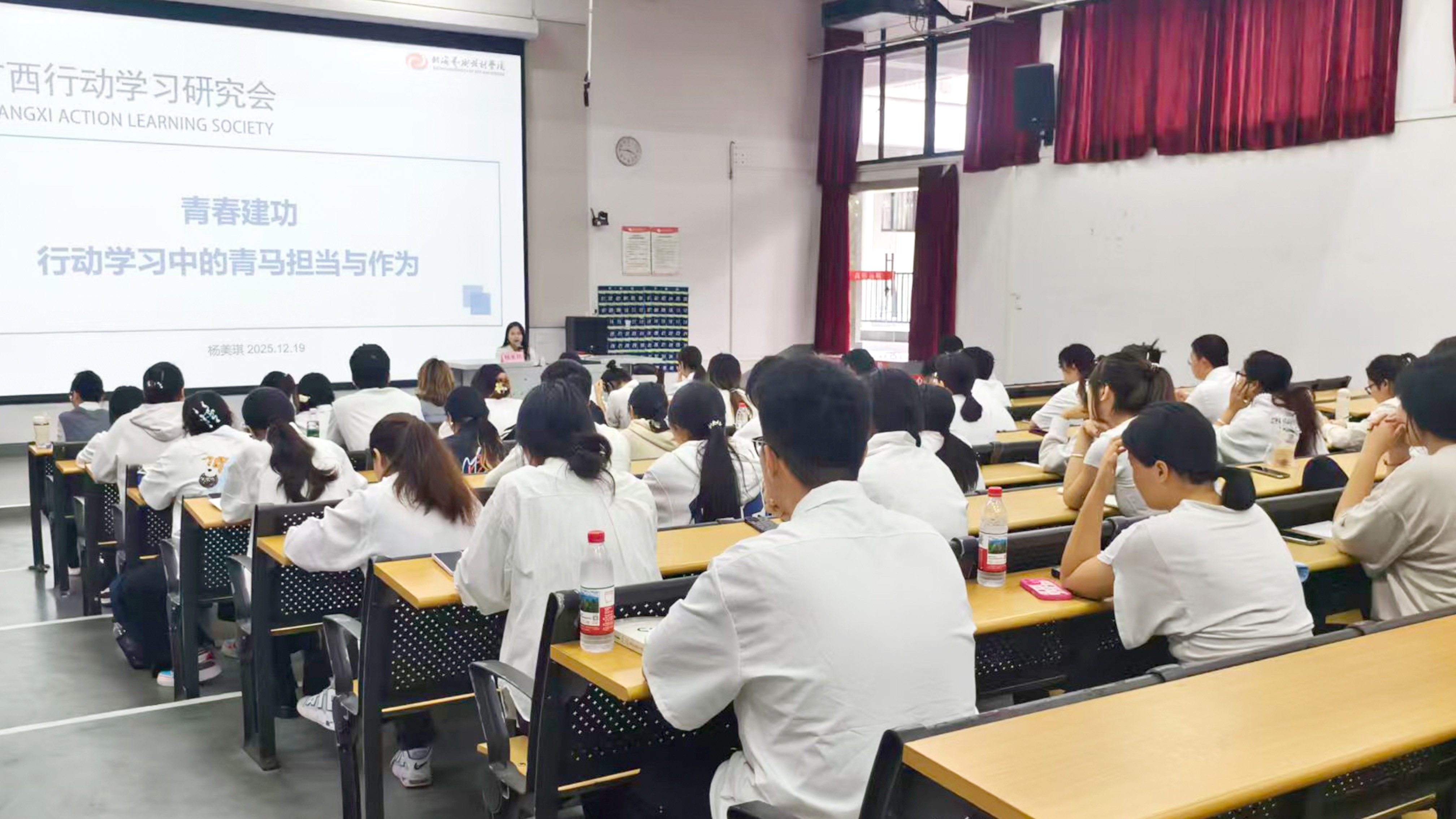 开班第一讲,由杨美琪老师带来“青春建功——行动学习中的青马担当与作为”专题授课。杨老师围绕“问题导向,群策群力,知行合一”三个部分,强调了行动学习的重要性,并分享了当代大学生应该如何进行系统性、方法性的学习。