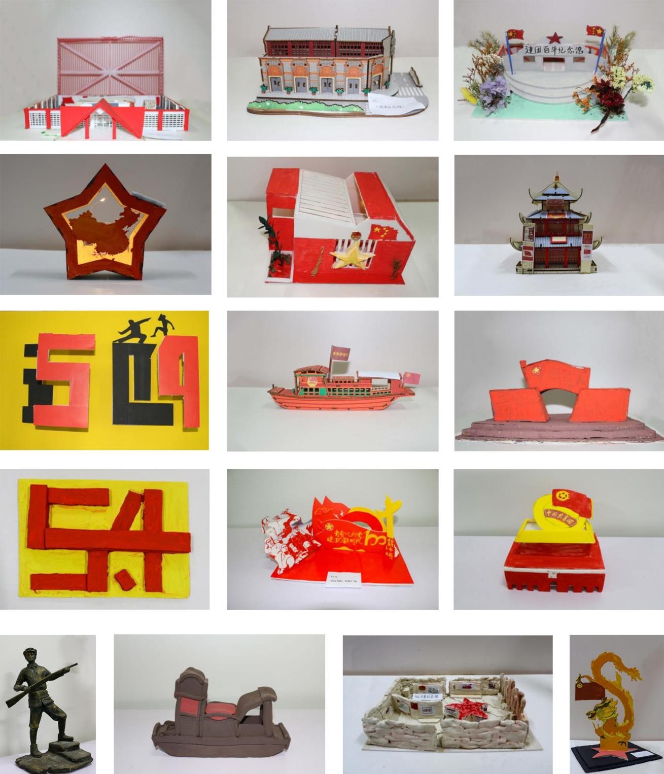 以纸板、粘土、木料等材质,配以3D打印、拼插等技术,一遍遍审核、修改,小组之间团结合作,互帮互助,最终定稿,以最优实力呈现在我们眼前。