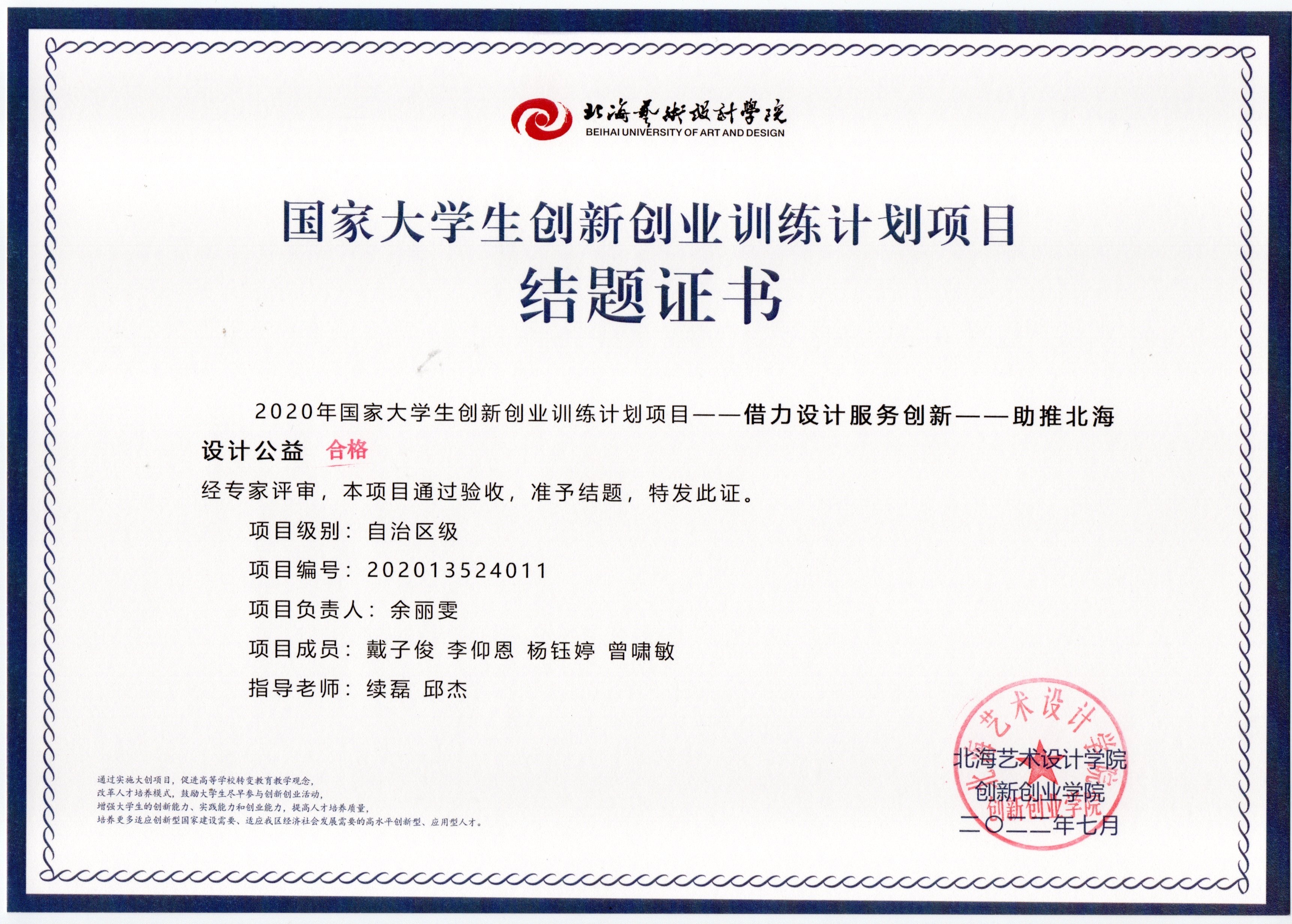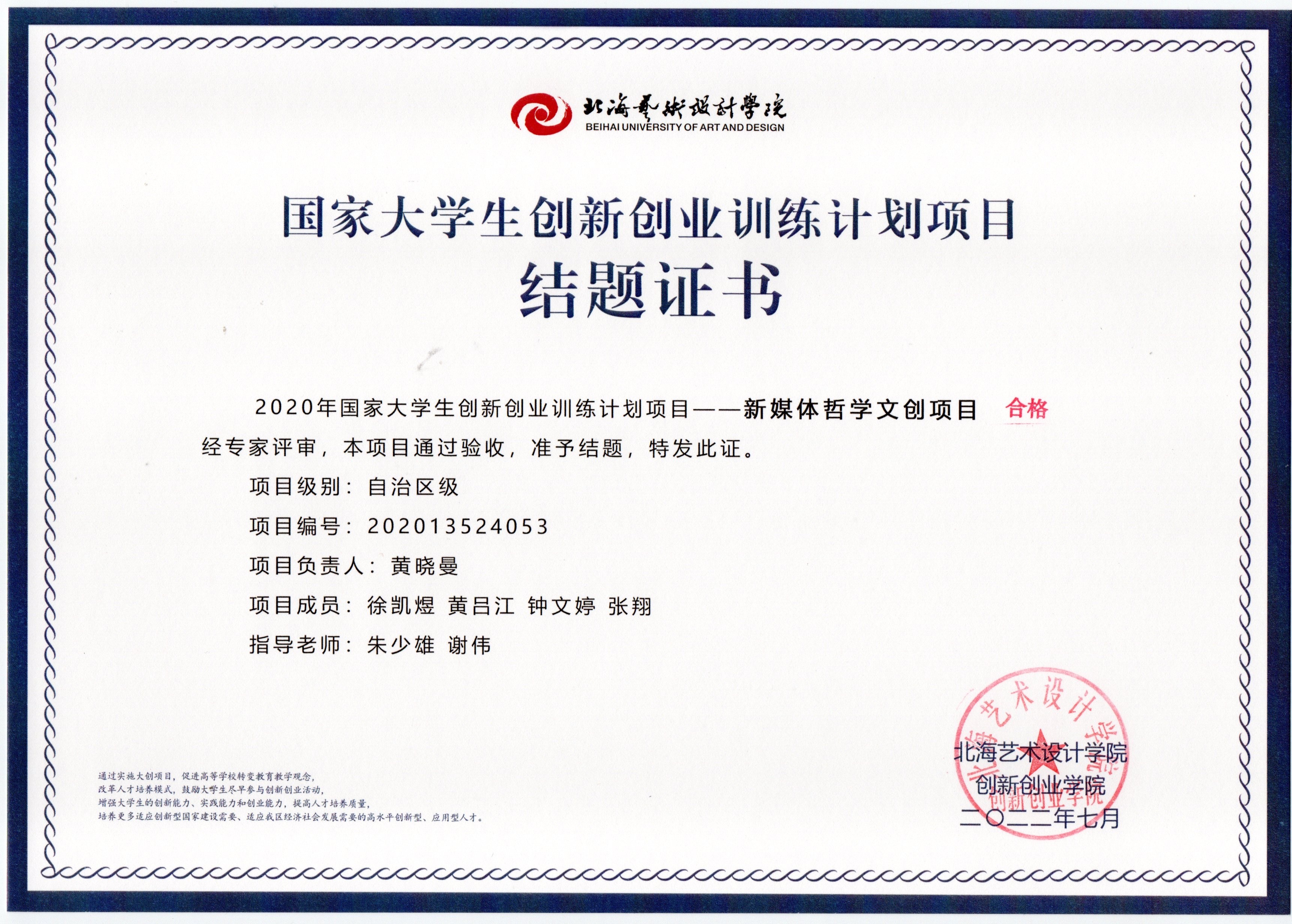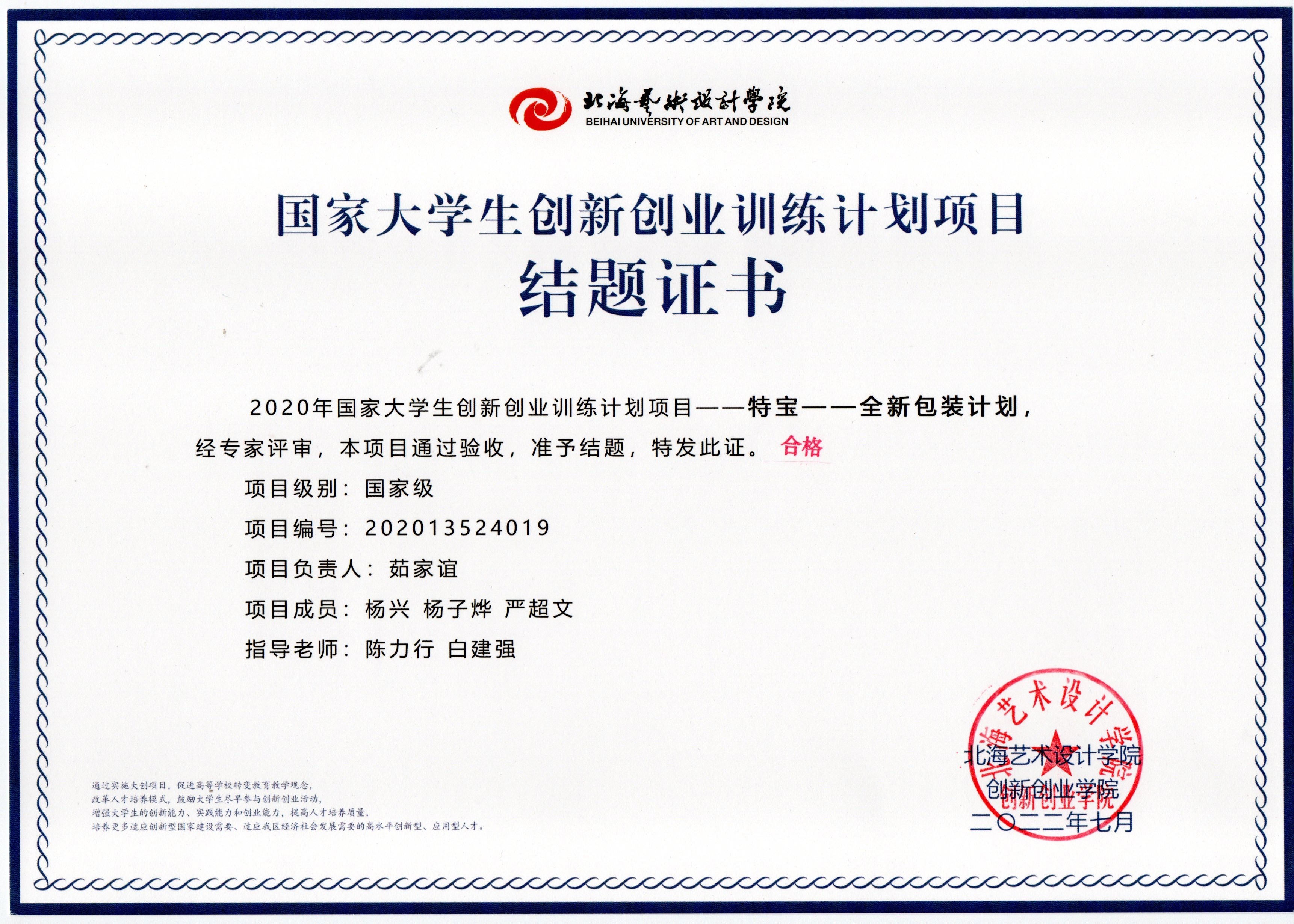 2020年立项(结题证书)