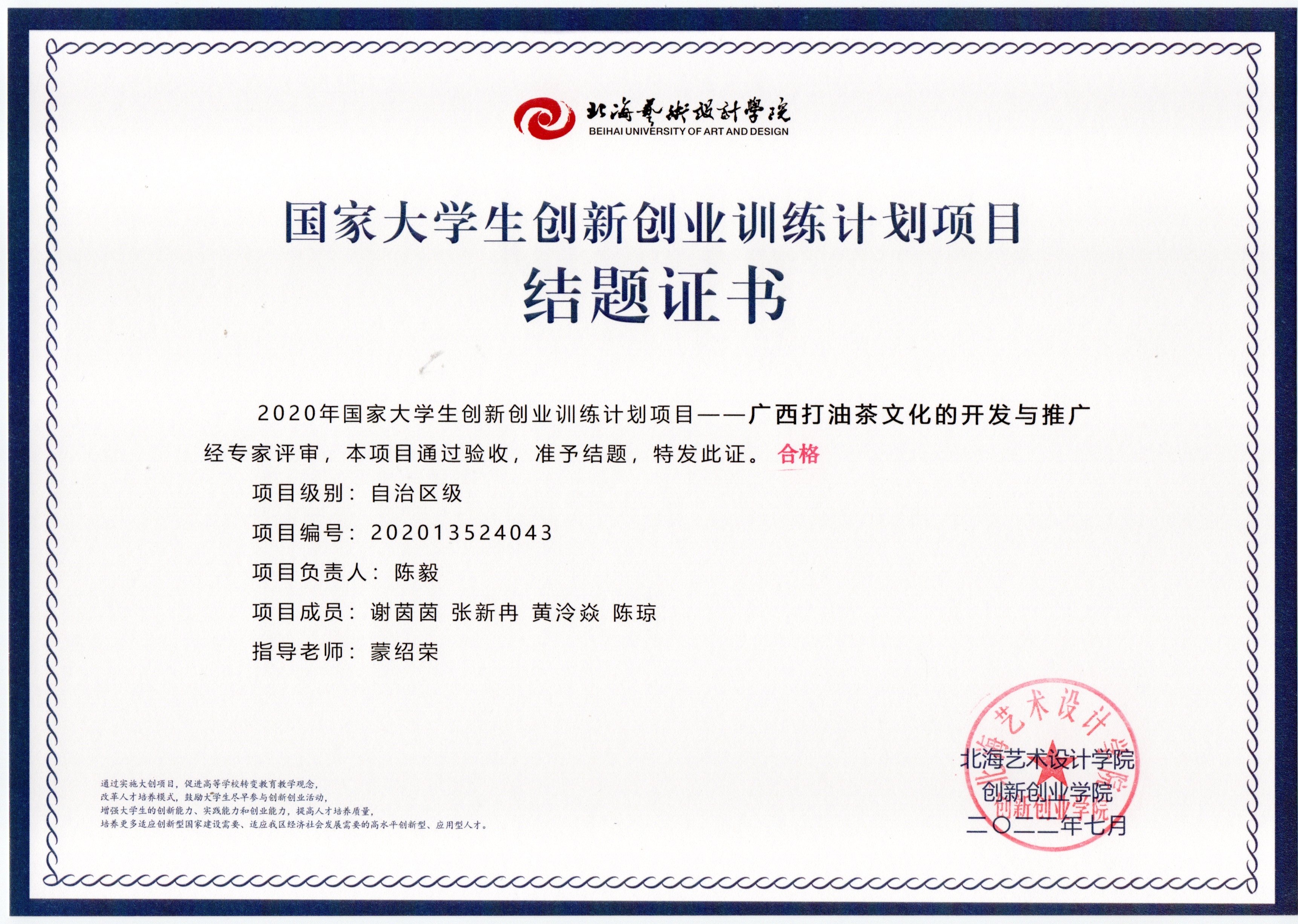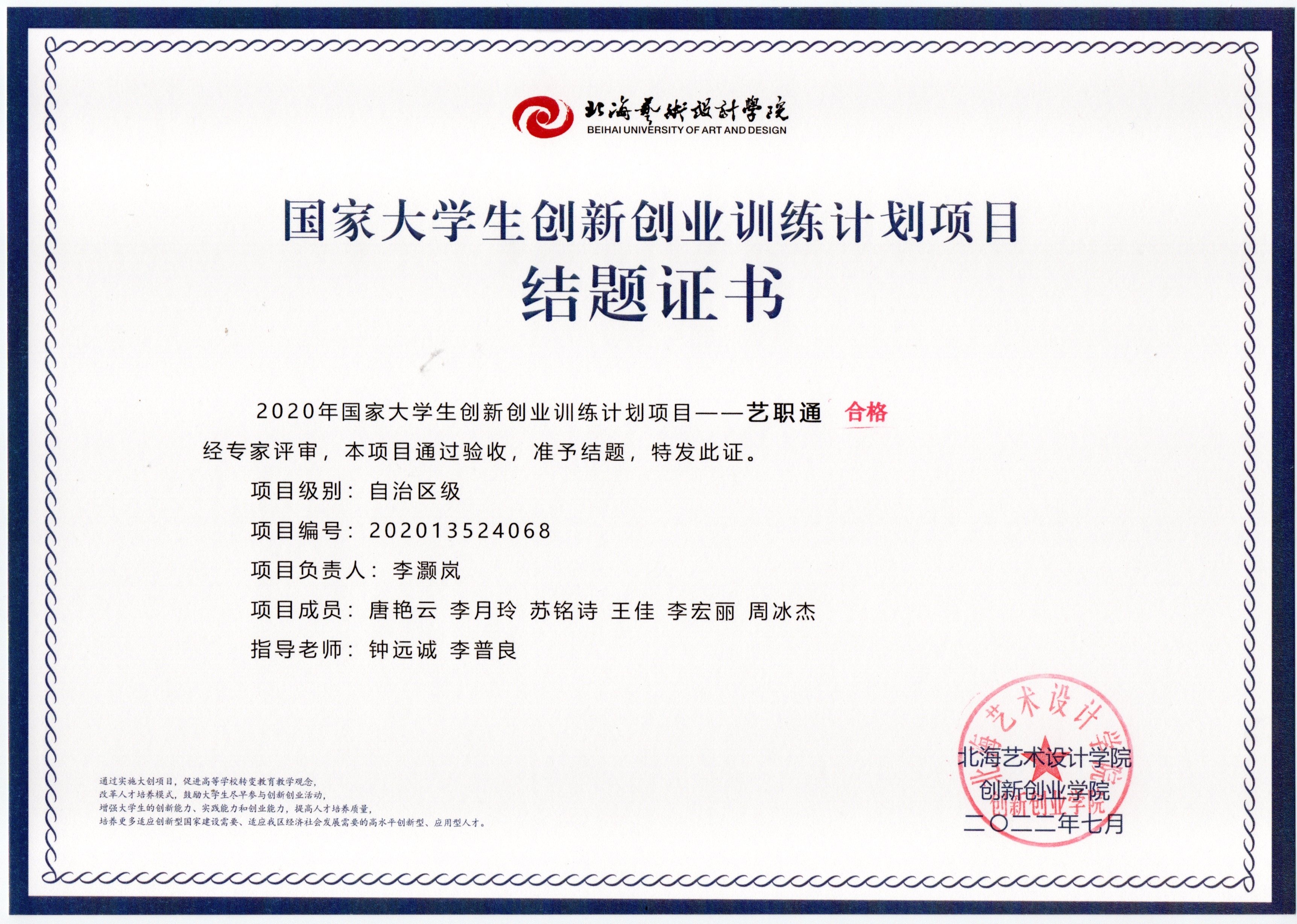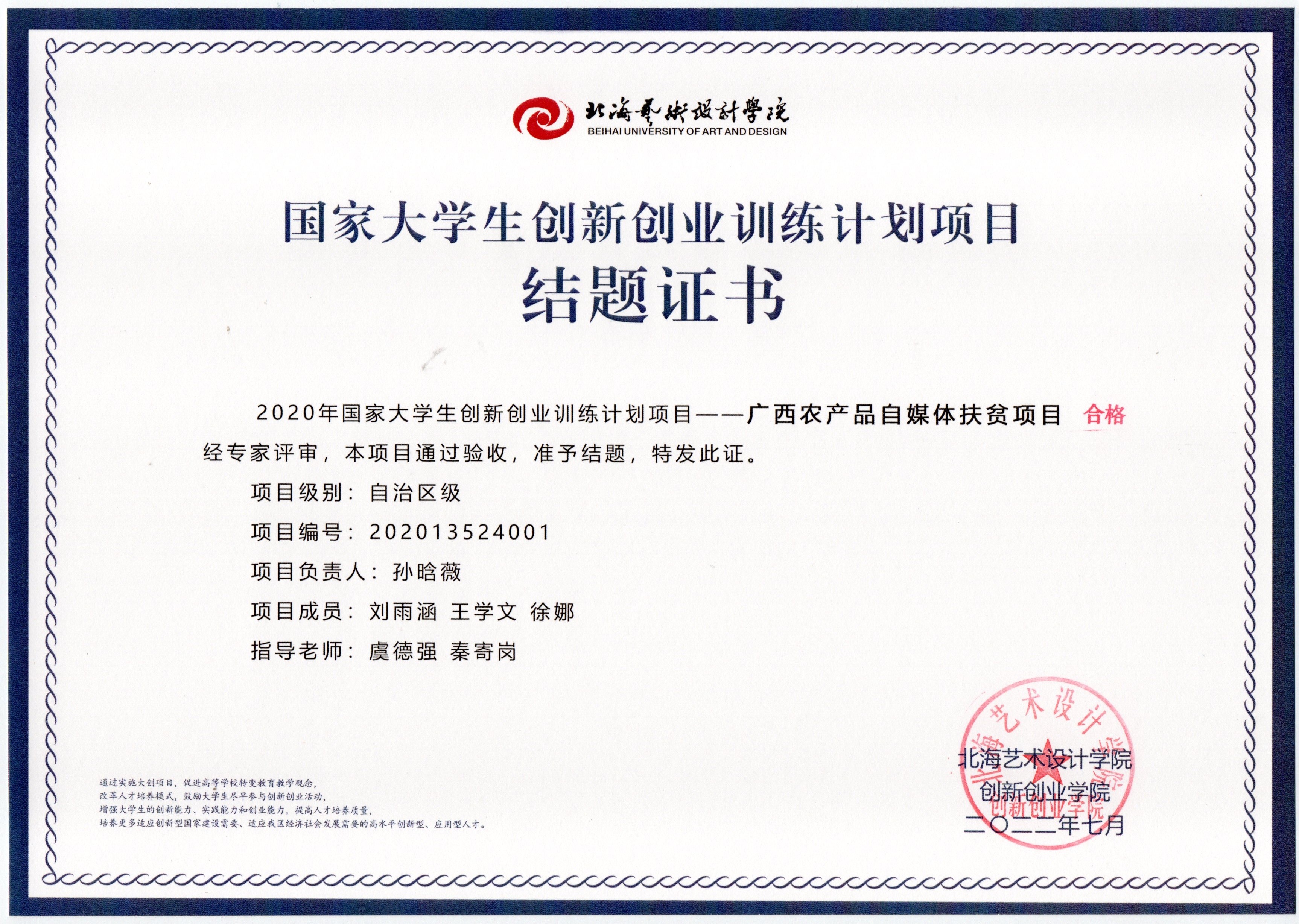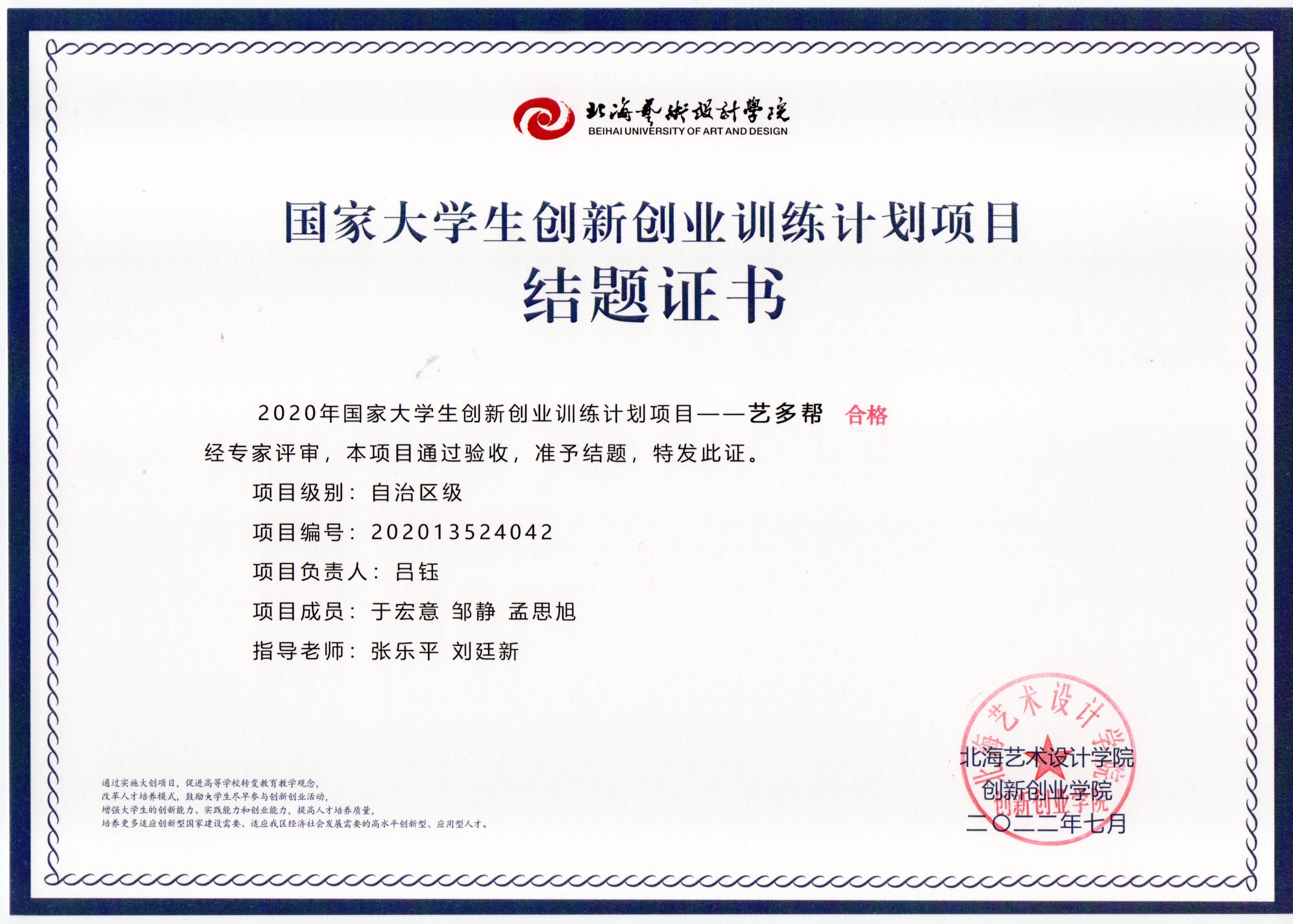 2020年立项(结题证书)