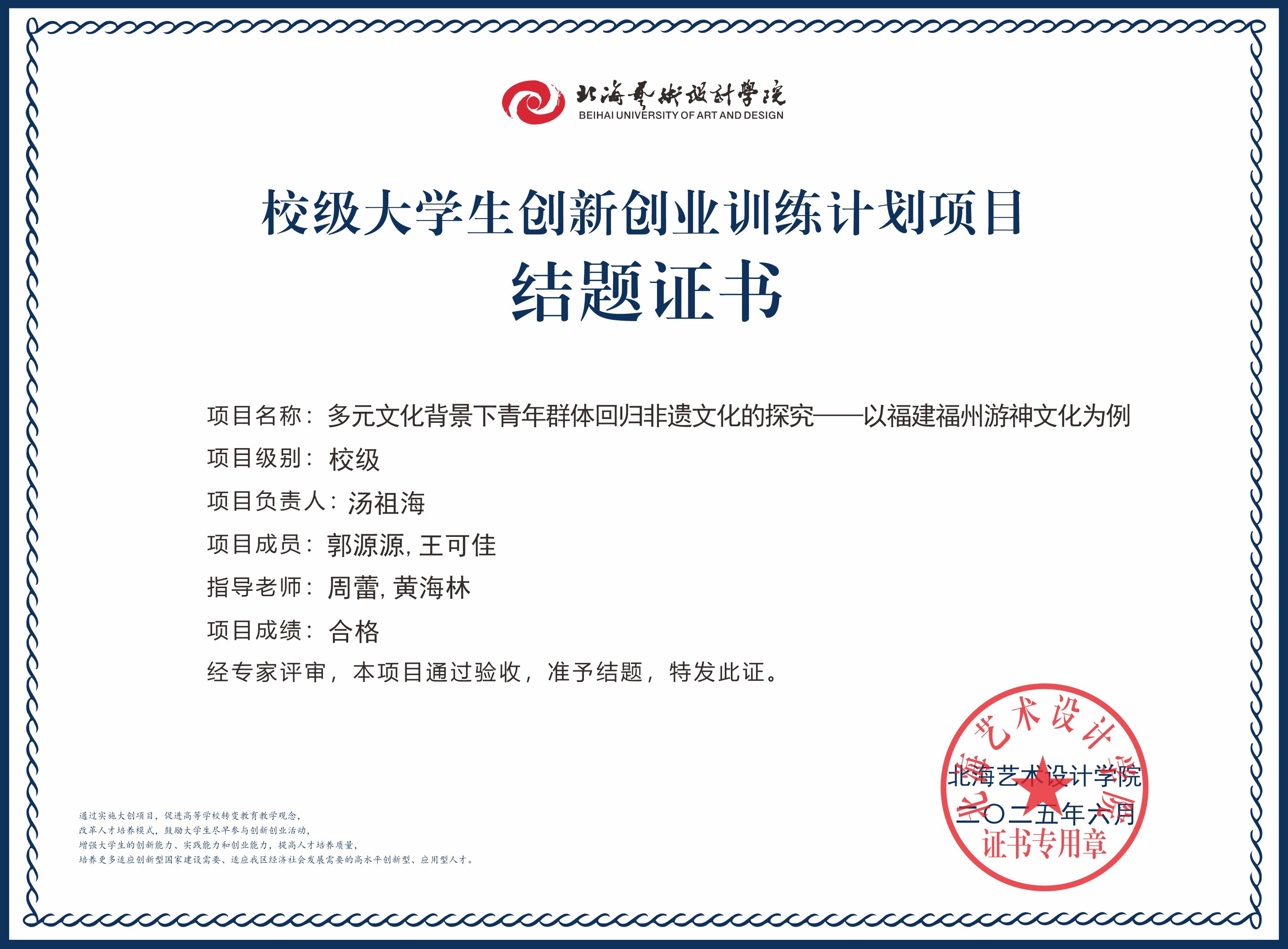2025年大创项目结题证书(校级)