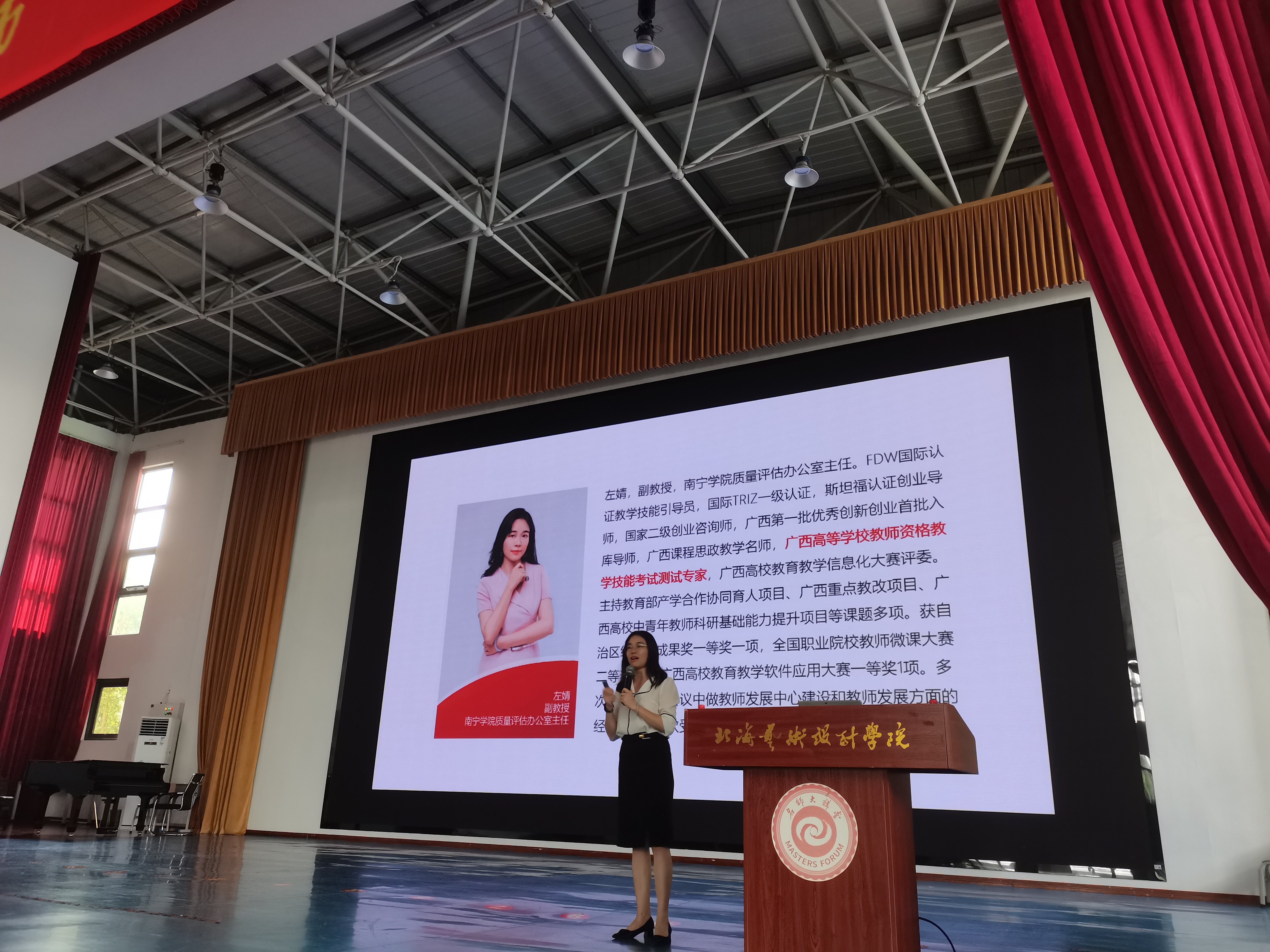 为增强我校教师高校教师资格证技能考试应试技巧,提高高校教师资格证技能考试通过率,5月19日下午,人事处(教师发展中心)邀请广西高等学校教师资格教学技能考试测试专家、FDW国际认证教学技能引导员左婧在学校礼堂为我校今年参加高校教师资格证技能考试的教师开展了专题培训。培训由人事处处长屈志鑫主持,共有200余位教师参加。