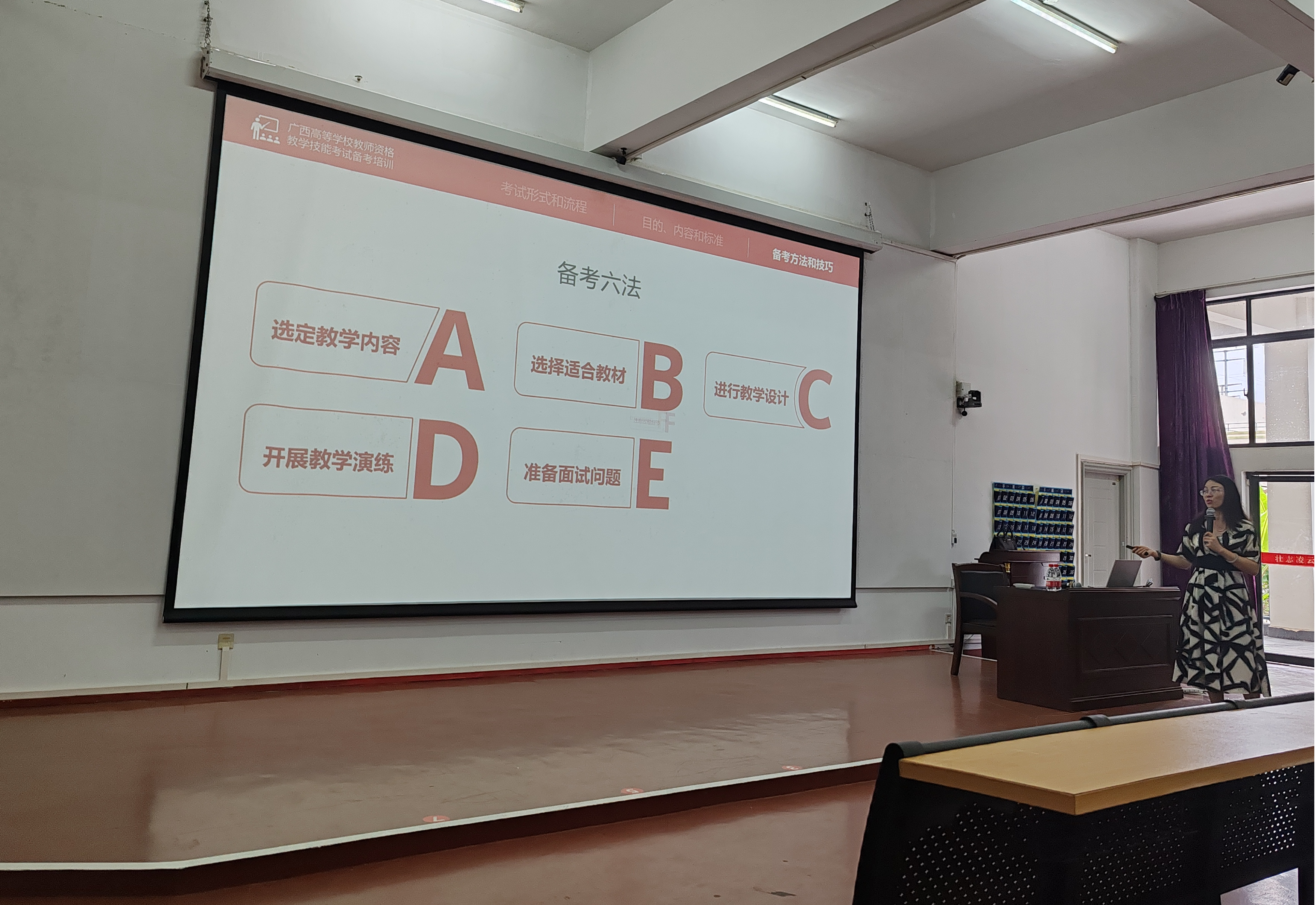 为增强我校教师高校教师资格证技能考试应试技巧,提高高校教师资格证技能考试通过率,6月7日下午,人事处(教师发展中心)邀请广西高等学校教师资格教学技能考试测试专家、FDW国际认证教学技能引导员左婧为我校今年参加高校教师资格证技能考试的教师开展了“高校教师资格证技能考试专题培训”。本次培训地点设在西校区伦理楼107,由人事处处长屈志鑫主持,各学院/部门共90余位教师参加本次培训。