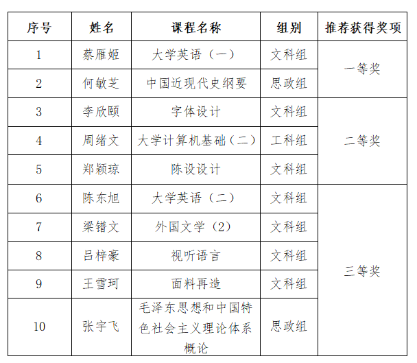 北海艺术设计学院第九届青年教师教学竞赛结果公示