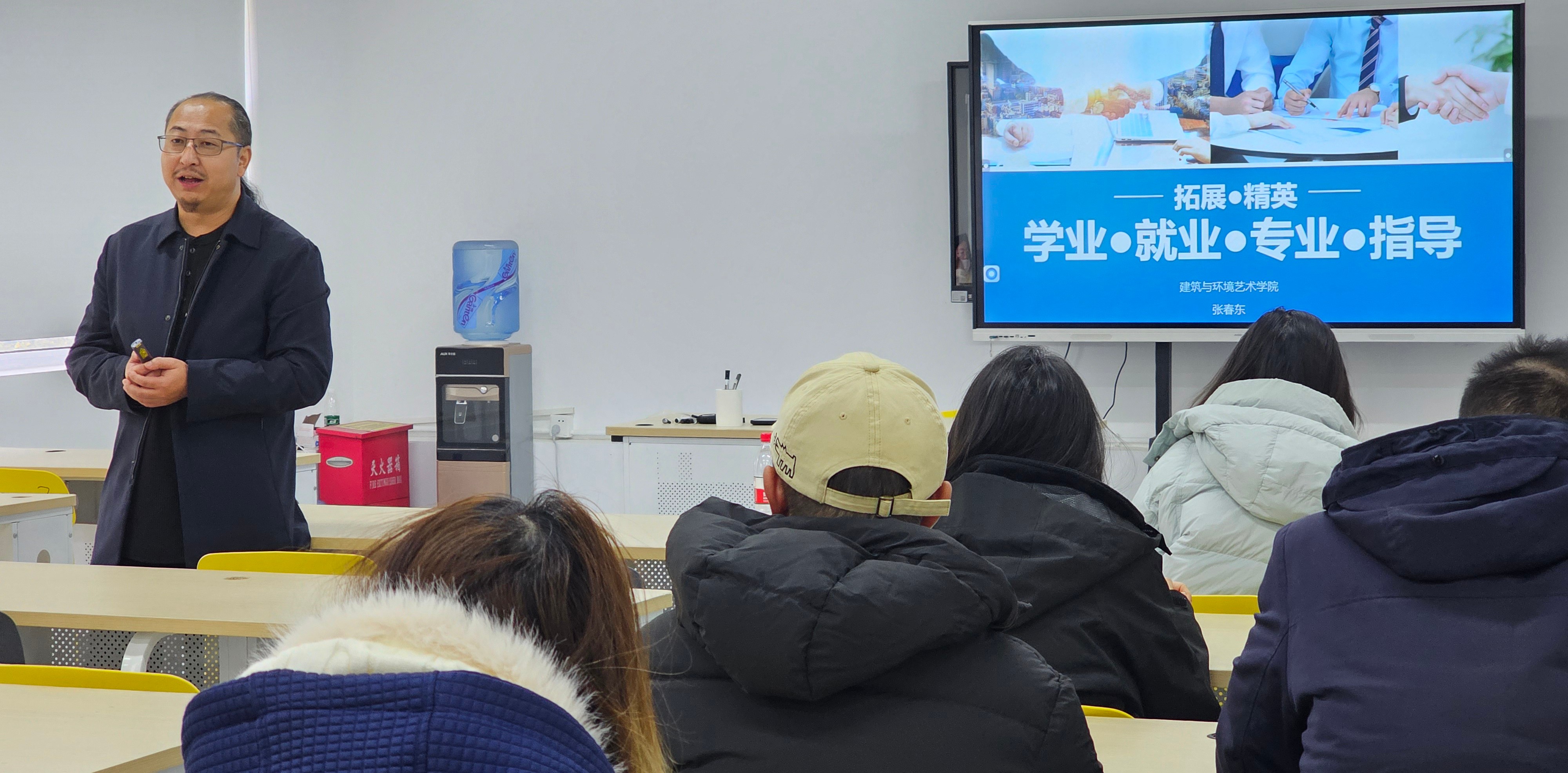 学院始终以学子需求为导向,在专项指导之外更注重长效支持。此次活动特别开通“一对一就业咨询通道”,由张春东院长牵头,联合专业就业指导教师为学子提供职业规划、简历优化、面试技巧等个性化解答,累计服务学生200余人次,切实解决了学子在职业选择中的困惑。张春东院长在总结中强调,后续学院将持续跟进北京实践基地学子的学业进展与就业动态,通过“动态跟踪+按需补给”的全周期支持模式,为学子在建筑与环境设计领域实现职业理想提供持续助力。为打通“实习经历—求职竞争力”的转化闭环,学院在宣讲期间同步推进多项务实举措,组织北京实践基地学子参与实习就业双选会,引导学生将实践中的设计经验、项目能力转化为求职核心优势。