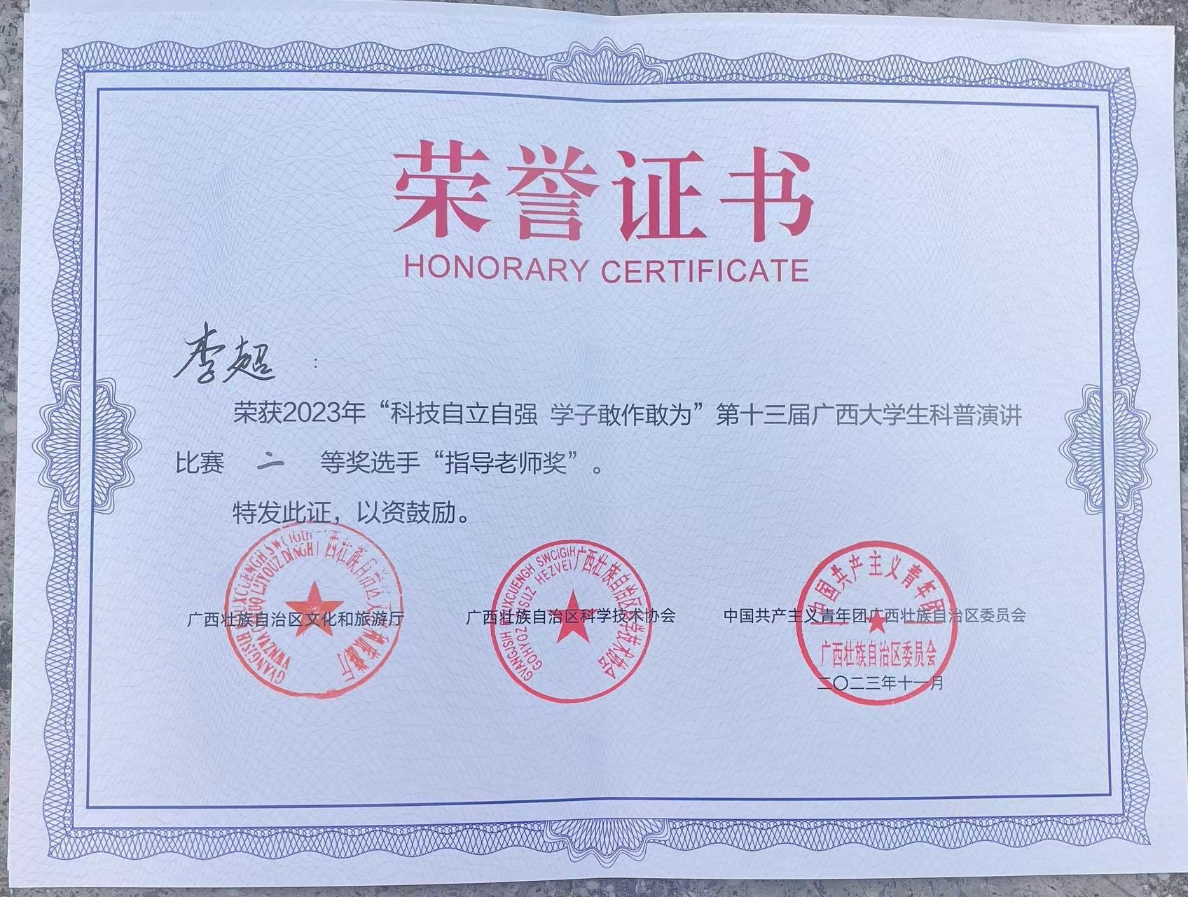 李超老师获“优秀指导教师”奖