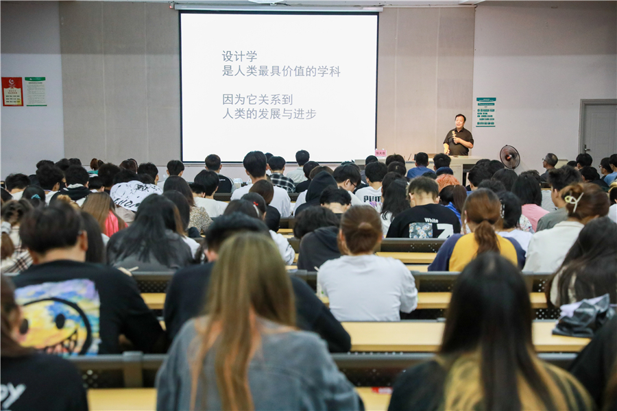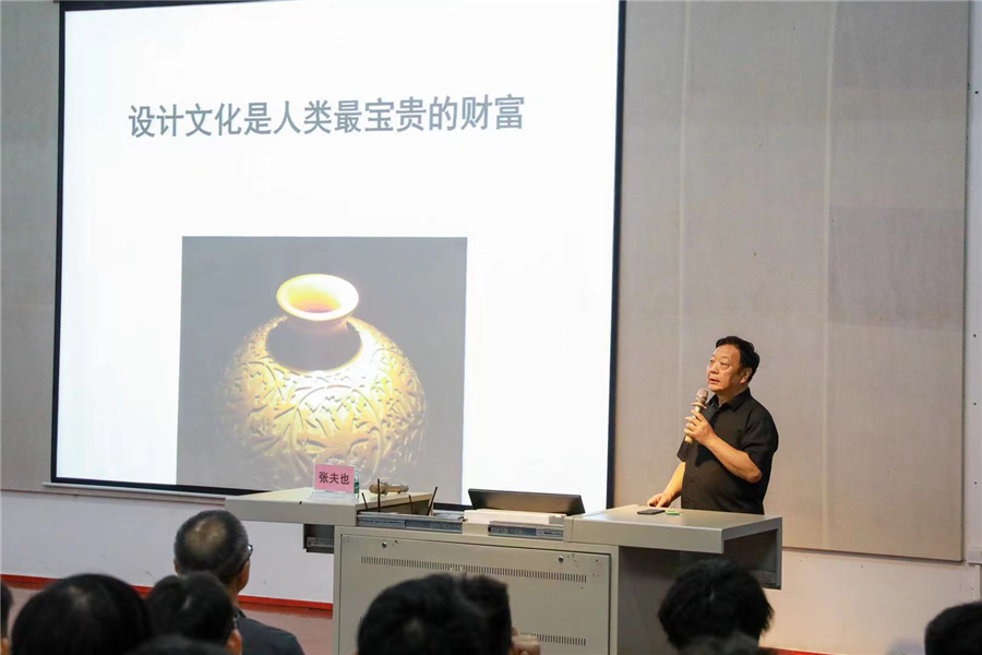 讲座开始,张夫也教授提出设计文化是人类最宝贵的财富,只有懂得设计、领略设计,才能在观察世界的过程中有力地改变世界、改造世界。设计作品要将人的意志注入到自然界物品中,改造自然物品设计成人为性作品。他向同学们展示了部分优秀设计作品,表示设计学是人类最具价值的学科,关系到人类的发展与进步。