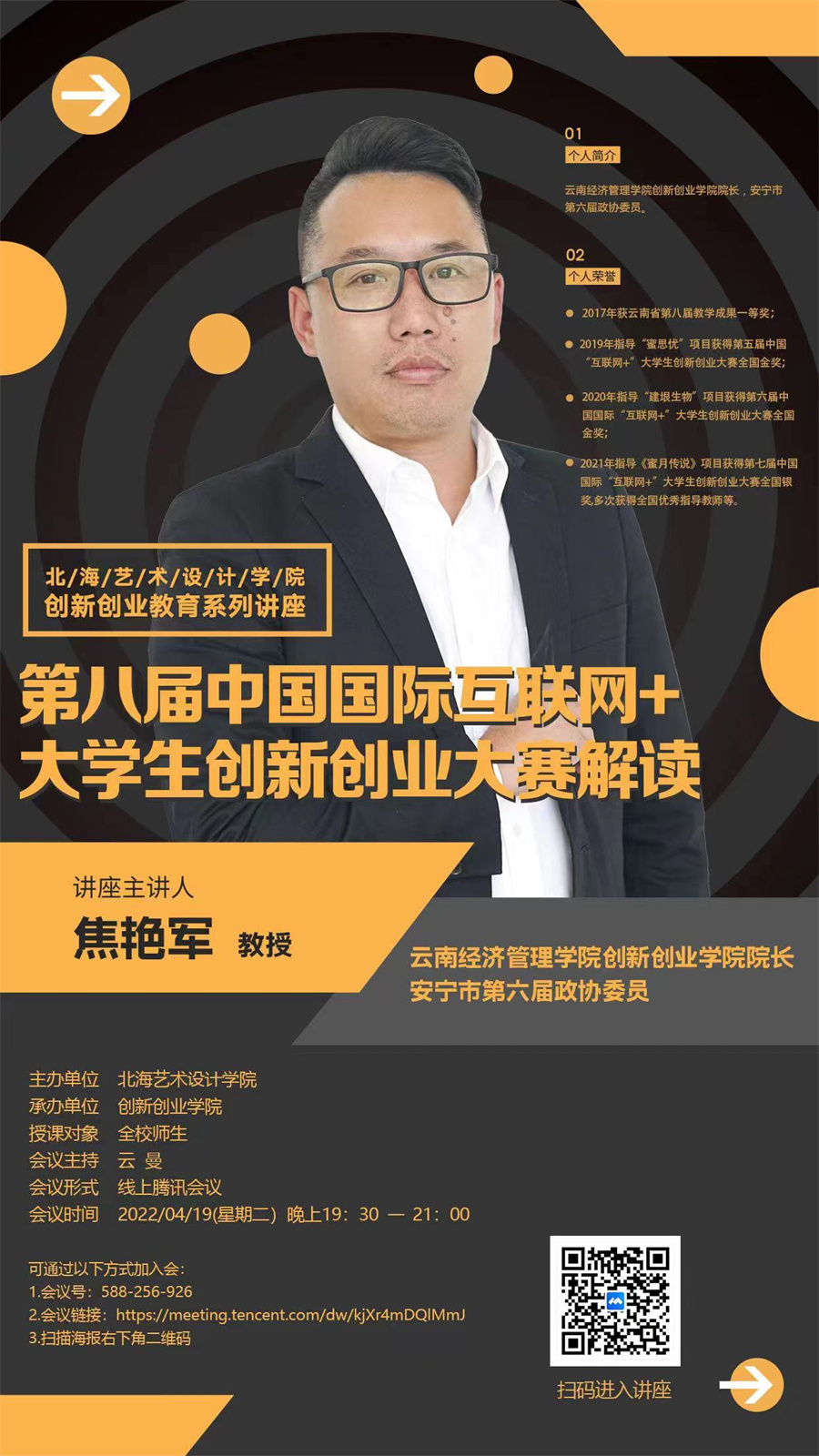 云南经济管理学院创新创业学院院长焦艳军应邀为我校作线上讲座海报