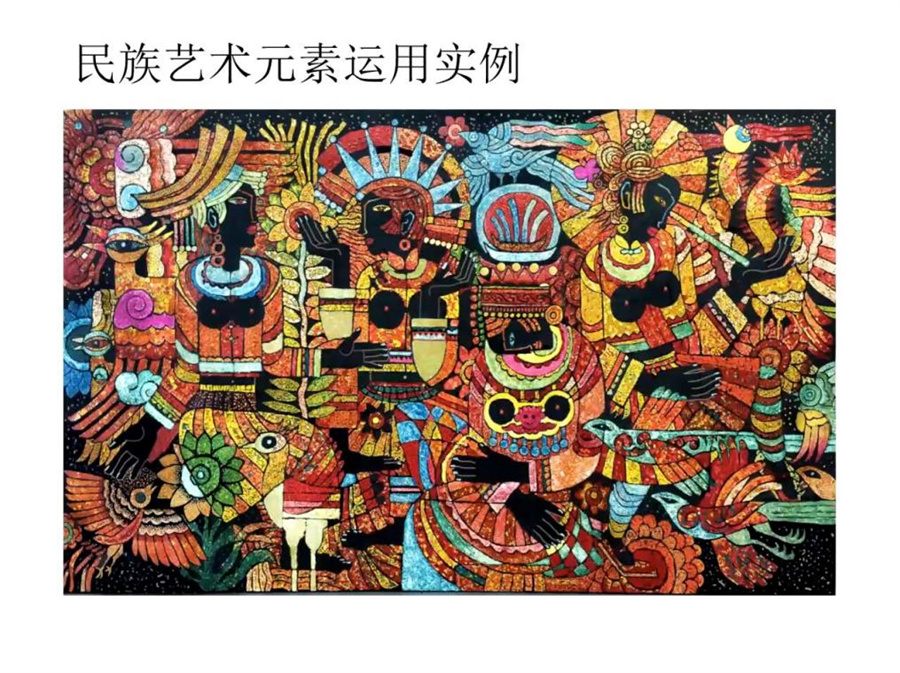 陆红阳教授在此次讲座中阐述的民族艺术主要聚焦在广西少数民族艺术,对于如何应用好民族艺术,他提出了“研究艺术离不开大民族”的观点,由大现小,从世界民族艺术到亚洲各大民族艺术,从中国民族艺术到广西西南少数民族艺术,其中包含的内容非常宽泛。陆红阳教授指出,艺术要用于实践,体现其价值,民族元素的融合与创新显得尤为重要。在当今时代发展的大潮流里,艺术领域呈现出“百花齐放、百家争鸣”的繁荣现象,传统民族艺术元素种类丰富,在其发展的基础上,不要盲目追求模仿,要忠于自身的创作,继承民族元素,不断探索,开拓创新,将其发展到另一个高度。