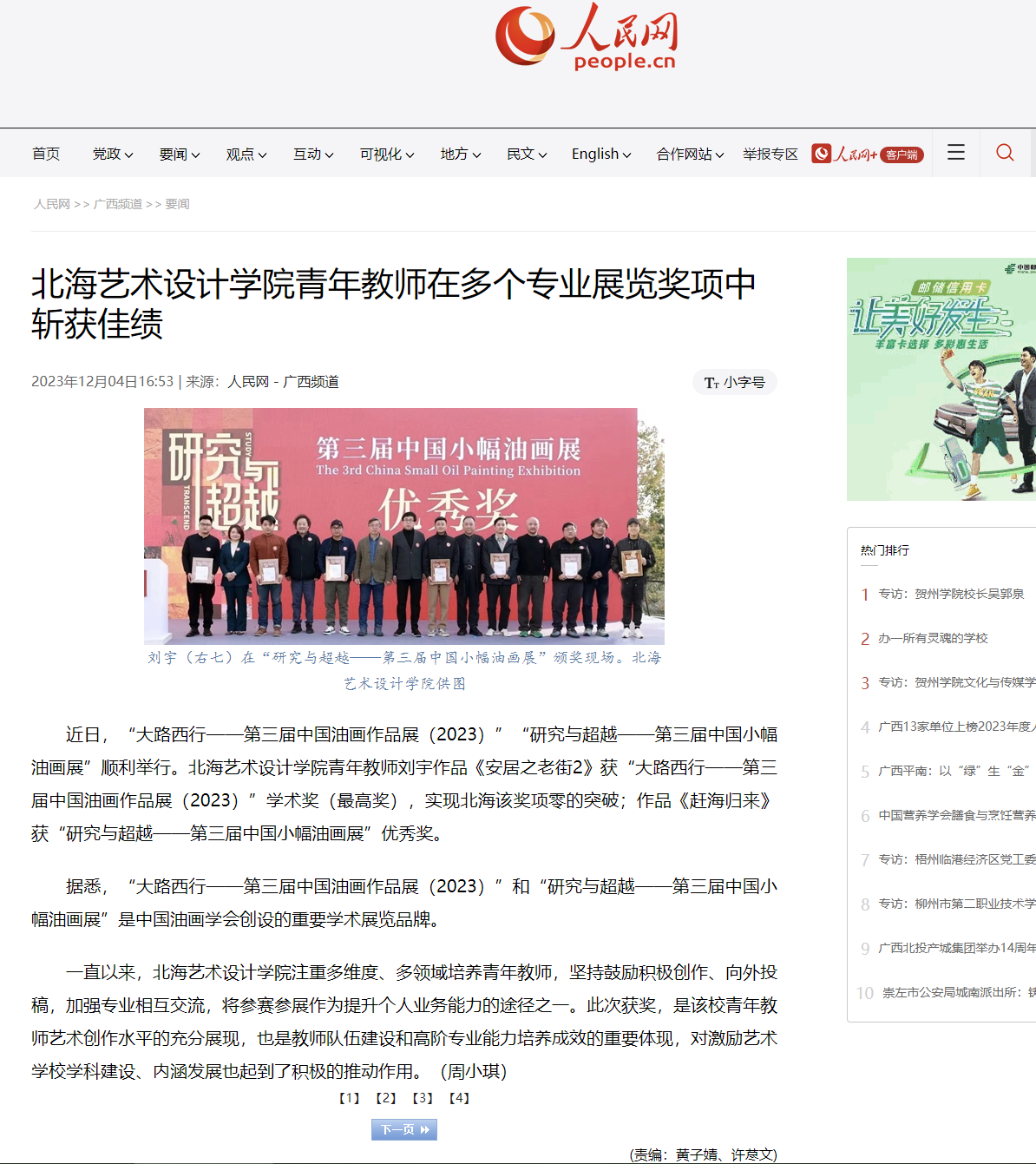 人民网:北海艺术设计学院青年教师在多个专业展览奖项中斩获佳绩