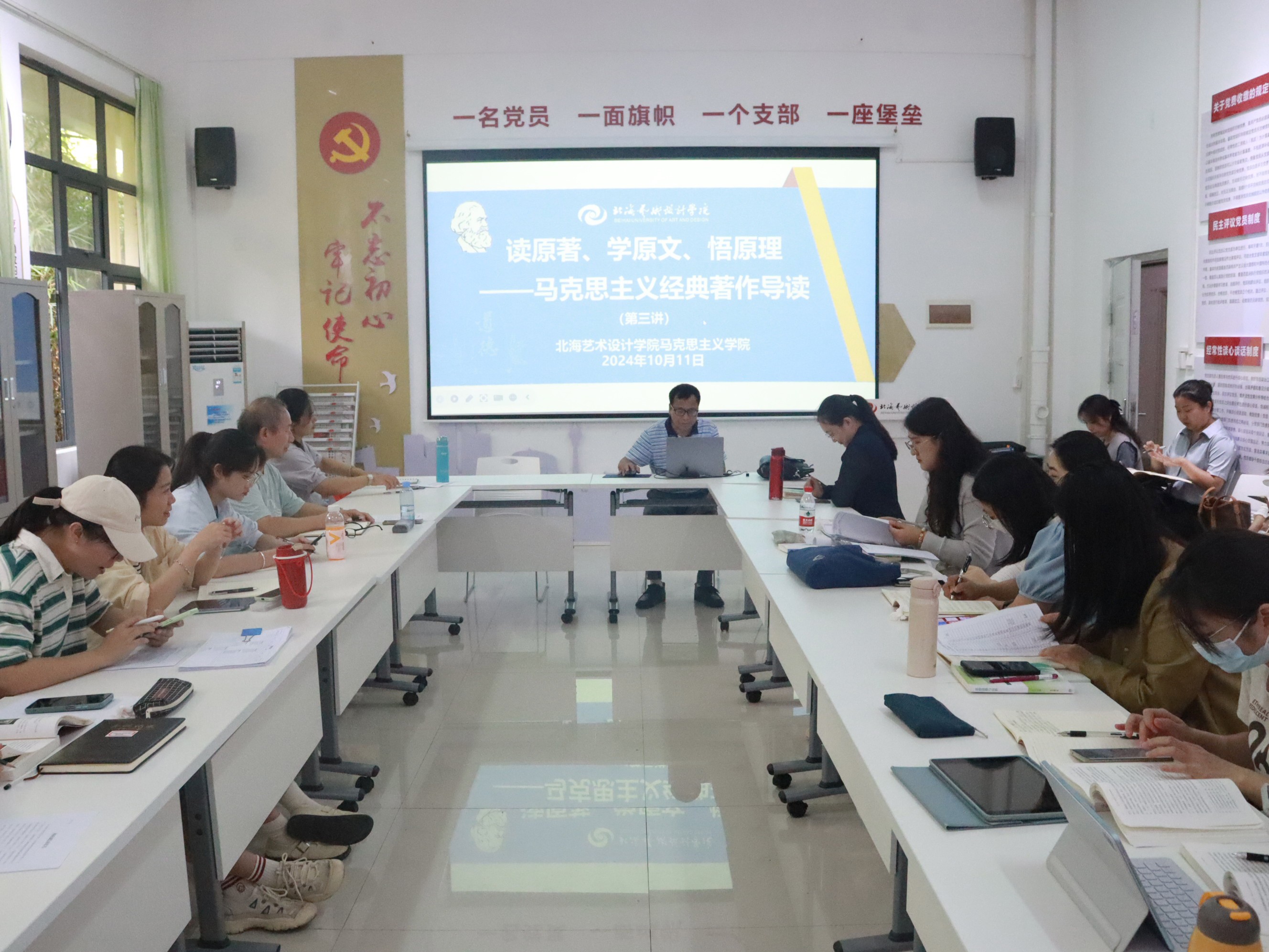 10月11日下午15:30,马克思主义经典著作导读系列活动第三讲在西校区行政楼103如约而至,由韦正球副教授主讲《1844年经济学哲学手稿》,我院副院长罗秋梅主持,学院全体中青年教师参加。