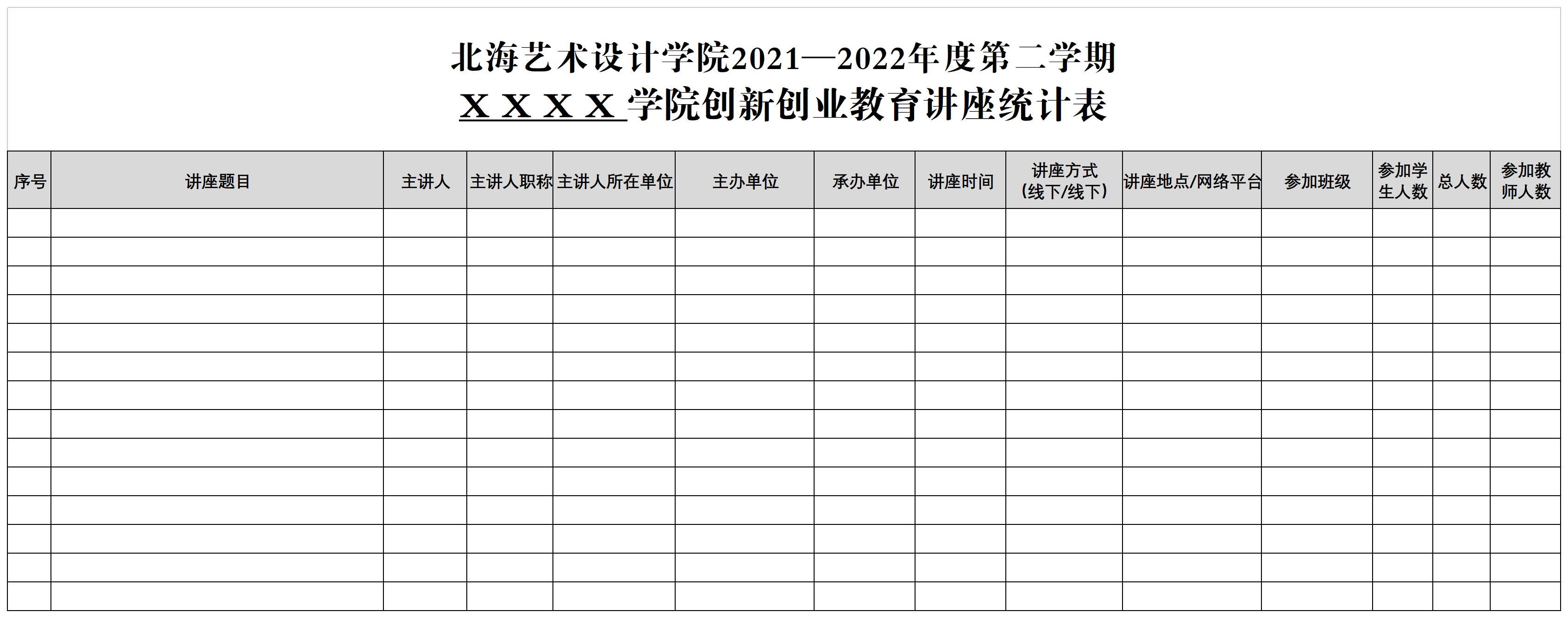 创新创业教育讲座统计表
