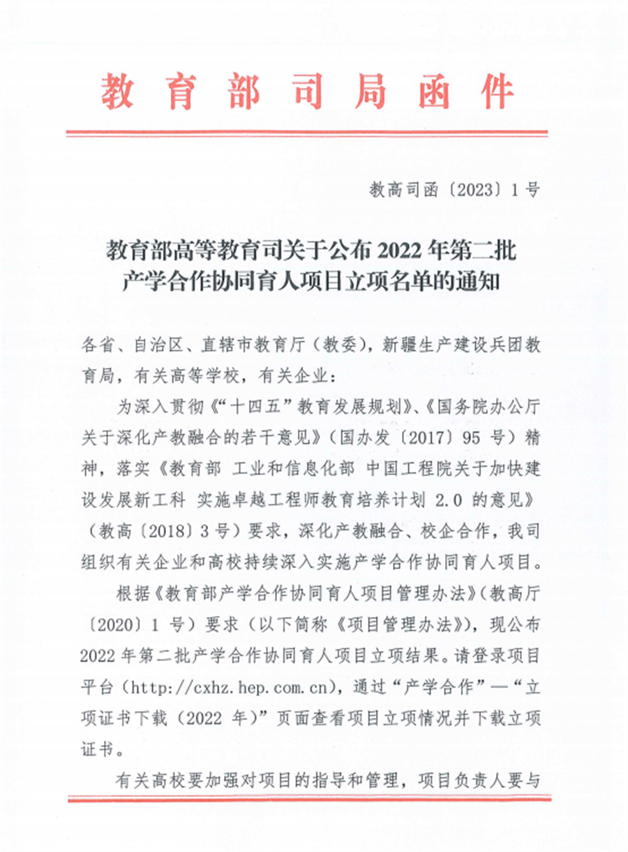 我校荣获1项2022年第二批教育部产学合作协同育人项目