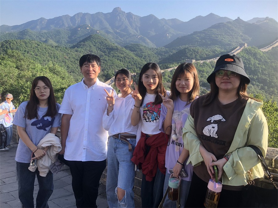 马克思主义学院院长姜献生教授及韦邕青老师在长城上进行思政教育