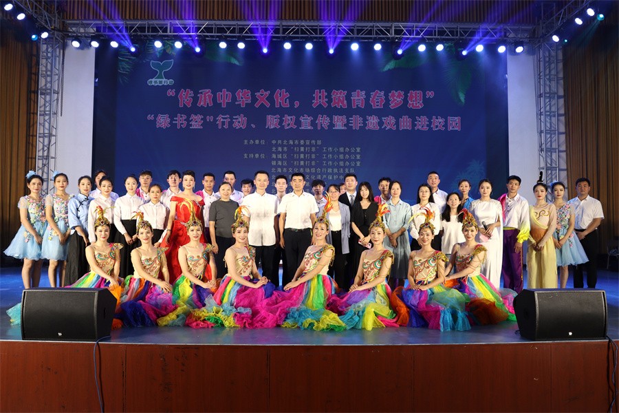 11月6日晚,以“传承中华文化 共筑青春梦想”为主题的2023年“绿书签”行动、版权宣传暨非遗戏曲进校园文艺汇演活动在北海艺术设计学院举办。