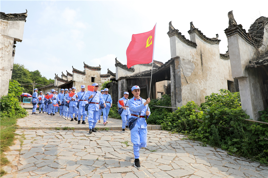 7月11日,学习班到大坪渡口、湘江战役新圩阻击战酒海井红军纪念园进行现场教学。大坪渡口是中央主力红军突破湘江的第一个渡口,1934年红军先头部队在此涉水渡江,为红军主力渡过湘江创造了有利条件。培训班学员在这里通过现场教学、重走革命足迹等形式忆党史、炼党性。党员们面对静静流淌的湘江水,深深地表达了对红军战士的缅怀和思念、对革命先烈的敬仰和礼赞。