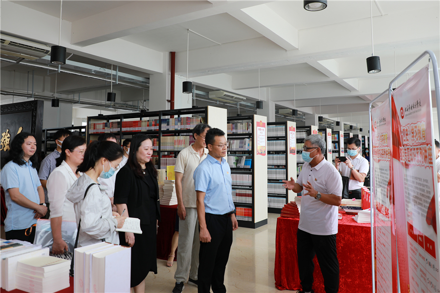 (黄卫平一行参观图书馆党史阅读角)