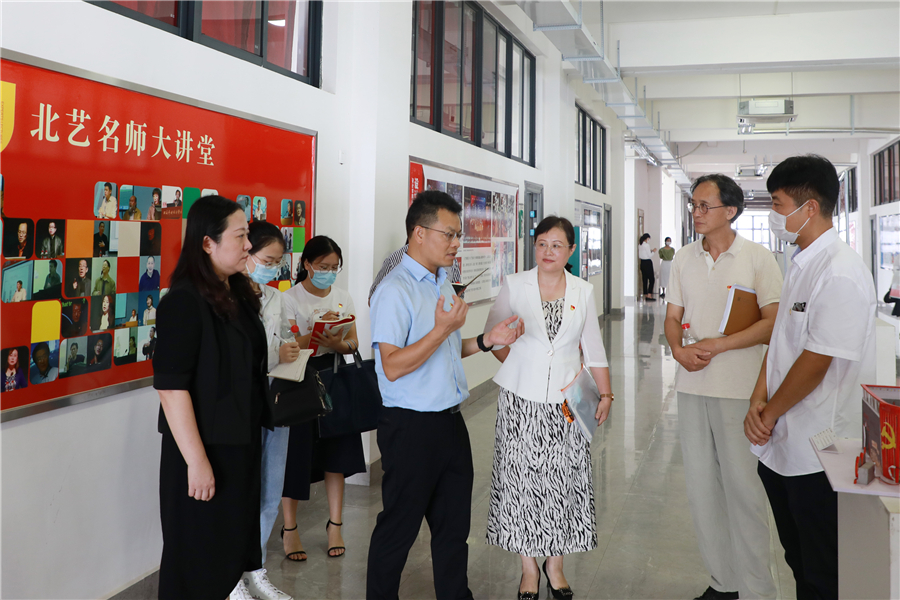 市教育局党组书记、副局长李祥吉,市教育局局长何江,市委教育工委专职副书记、市教育局党组成员黄毅,北海职业学院党委书记林旺兴,北海艺术设计学院党委书记张阳、校长卢新华陪同调研。(李宗毅/摄)