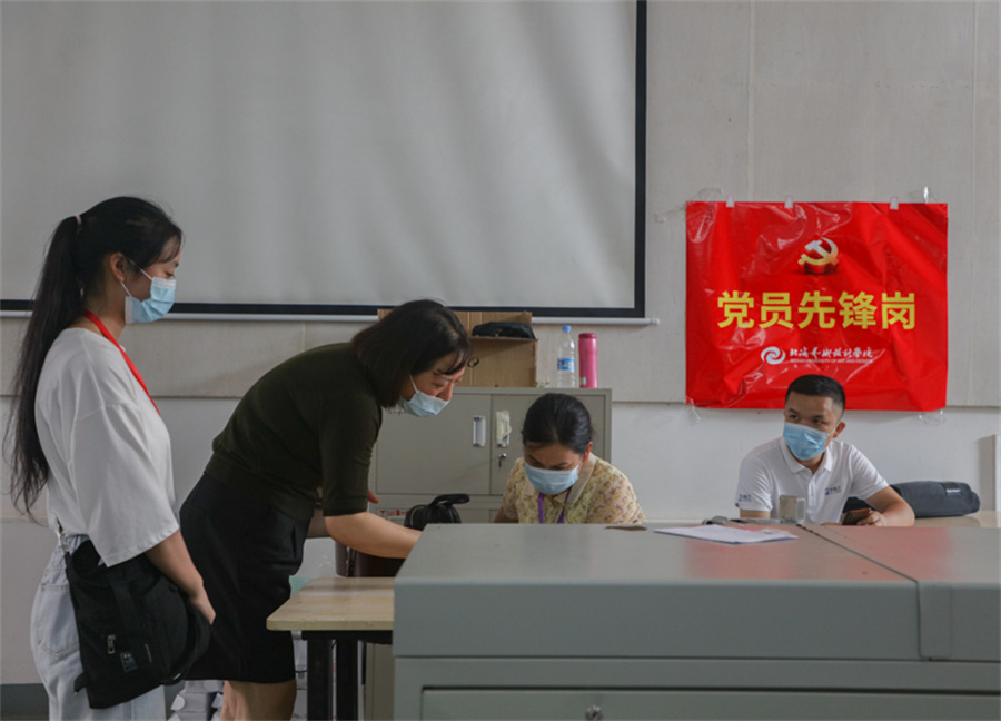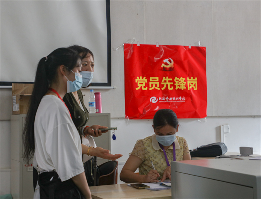 宋寅仕:第一天的迎新工作已经结束,看着到校的新生们一个个都朝气蓬勃,脸上都充满着喜悦,回头想想时间过得还真快啊!又到了开学季。迎新工作中我的任务是立足党员先锋岗做好咨询服务工作,耐心热情为新手及家长解答疑惑,对新生及家长反映的情况一时无法解答的要及时上报,协助迎新组做好迎新服务工作,展现出北艺人的服务精神,也让新生及家长们感受到了北艺的热情。最后,我认为作为一名党员志愿者在迎新中应该立足于岗位全心全意为新生服务,工作中为新生付出了自己的一点绵薄之力,虽然工作有些辛苦,却过的很充实,很有意义。21级的新生们,你们将是北艺的未来,今天你们以北艺为荣,明天北艺将因你们而骄傲。