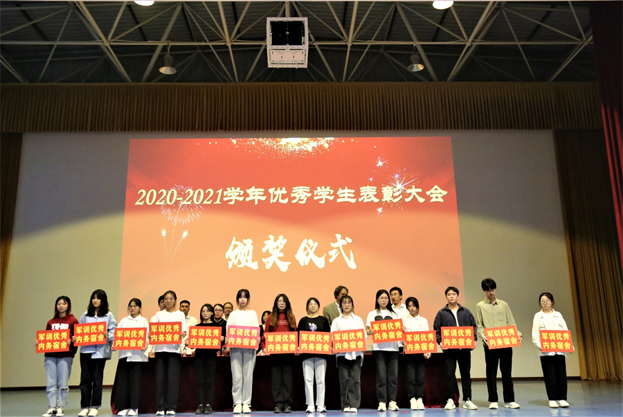 会上,与会领导依次为2020-2021学年“三好学生”、“优秀学生干部”、“优秀寝室长”、“先进班集体”、“优秀学生教官”、“军训优秀连队”、“军训优秀内务宿舍”及2020-2021年度自治区资助主题比赛获奖者进行表彰颁奖。