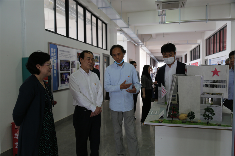 (唐安洲一行参观建筑与环境艺术学院2019级景观设计专业学习成果《建党百年红色文化景观设计展》)