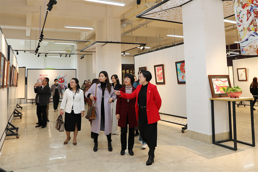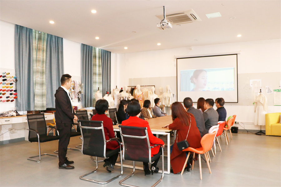 会前,周江煜一行参观了学校校园环境、设计艺术学院服装工作室、设计艺术学院工作室、“英语+专业”优秀作品展和建筑与环境艺术学院红色元素模型展览,观看了课程思政教学成果视频。