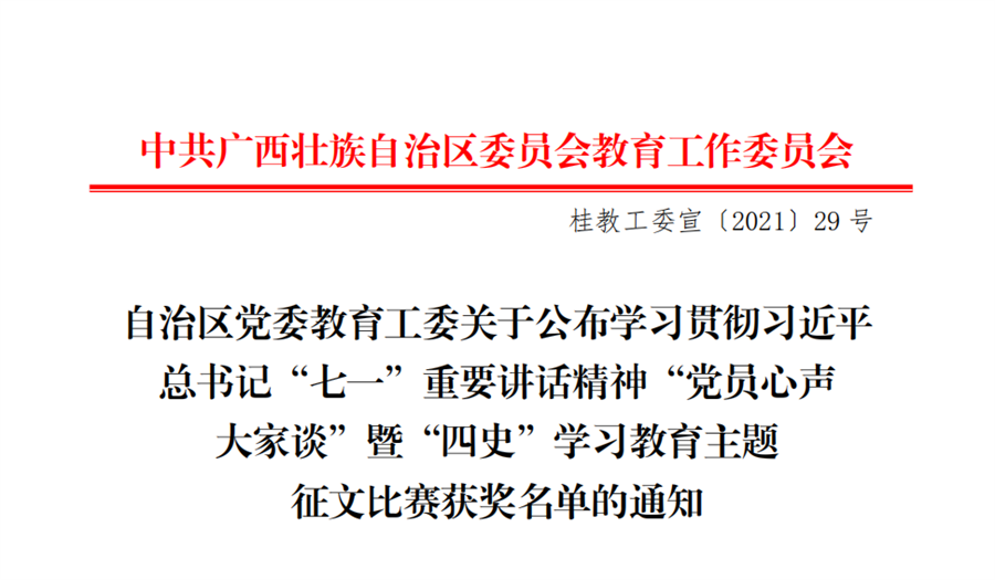喜讯 || 我校多篇征文在广西高校学习贯彻习近平总书记“七一”重要讲话精神“党员心声大家谈”暨“四史”学习教育主题征文比赛中获奖
