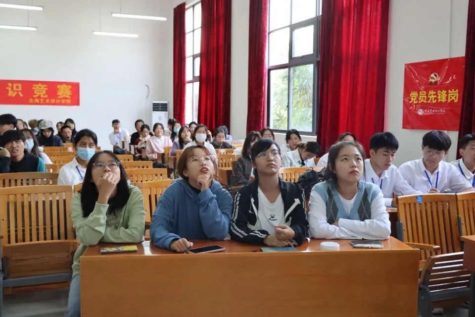 第四轮,团队抢答题。比赛两队进行了激烈的抢答,比分较为落后的一队并不气馁,仍斗志昂扬,努力追赶。