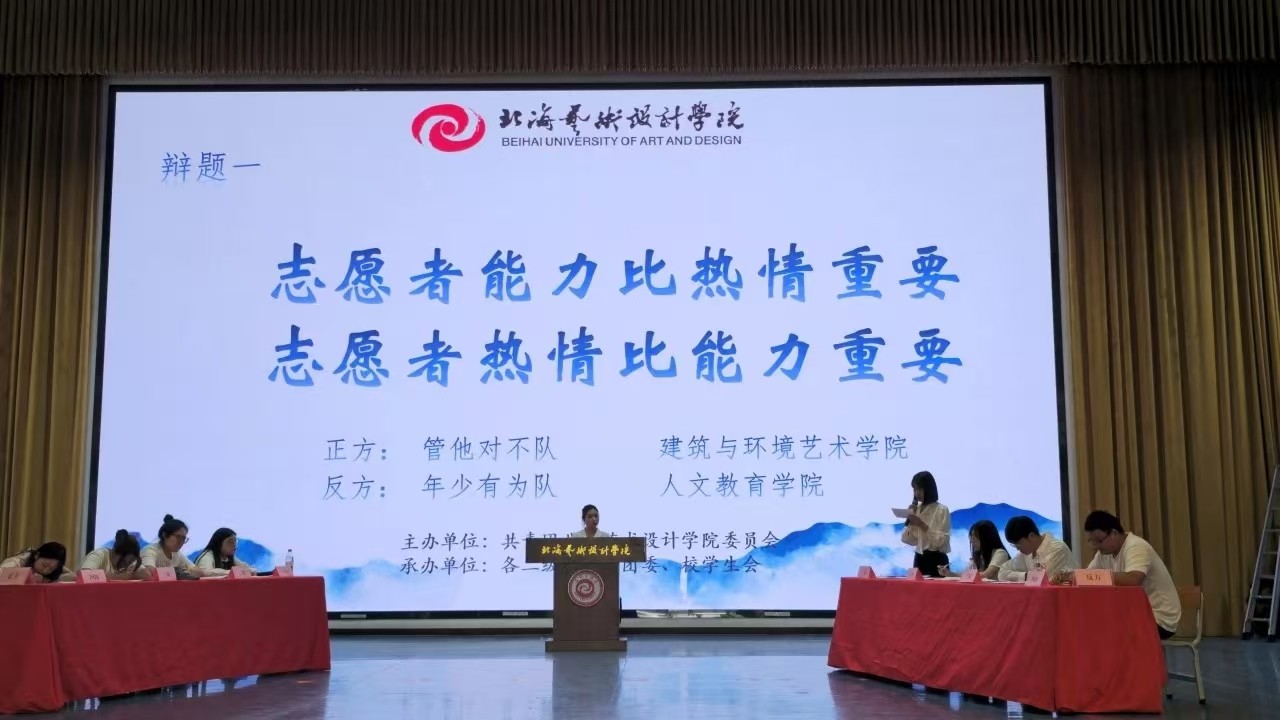 第一场比赛辩题为“志愿能力比热情重要vs志愿者热情比能力重要”,正方辩手与反方辩手都积极准备,正方声音洪亮,反方辩友蓄势待发,双方有来有回,展现了大学生良好精神风貌。