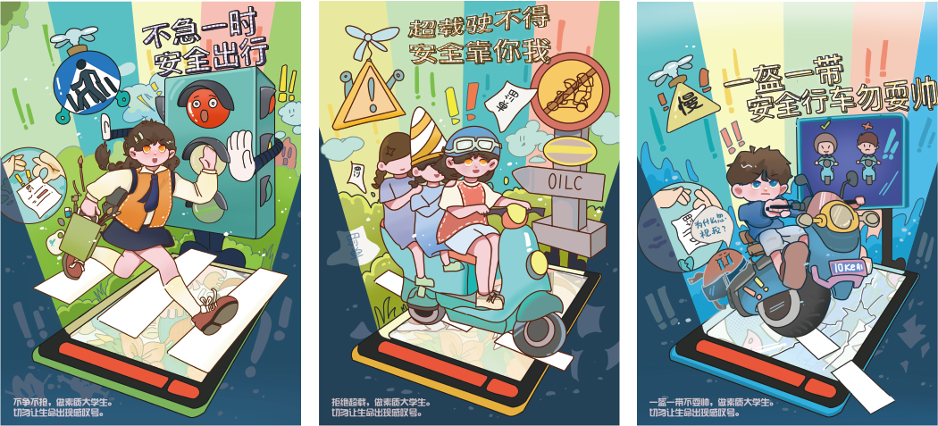 海报类:优秀奖  《交通安全系列作品-勿闯红灯,戴好头盔,请勿超载》