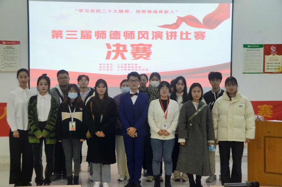 “学习党的二十大精神 培根铸魂育新人”第三届师德师风演讲比赛圆满落幕,此次演讲比赛,人文教育学院学子进一步领悟了党的二十大精神。同时,也加强了对未来教师职业的了解,激励未来教师厚植教育情怀。(摄影:刘媛媛、黄心怡)