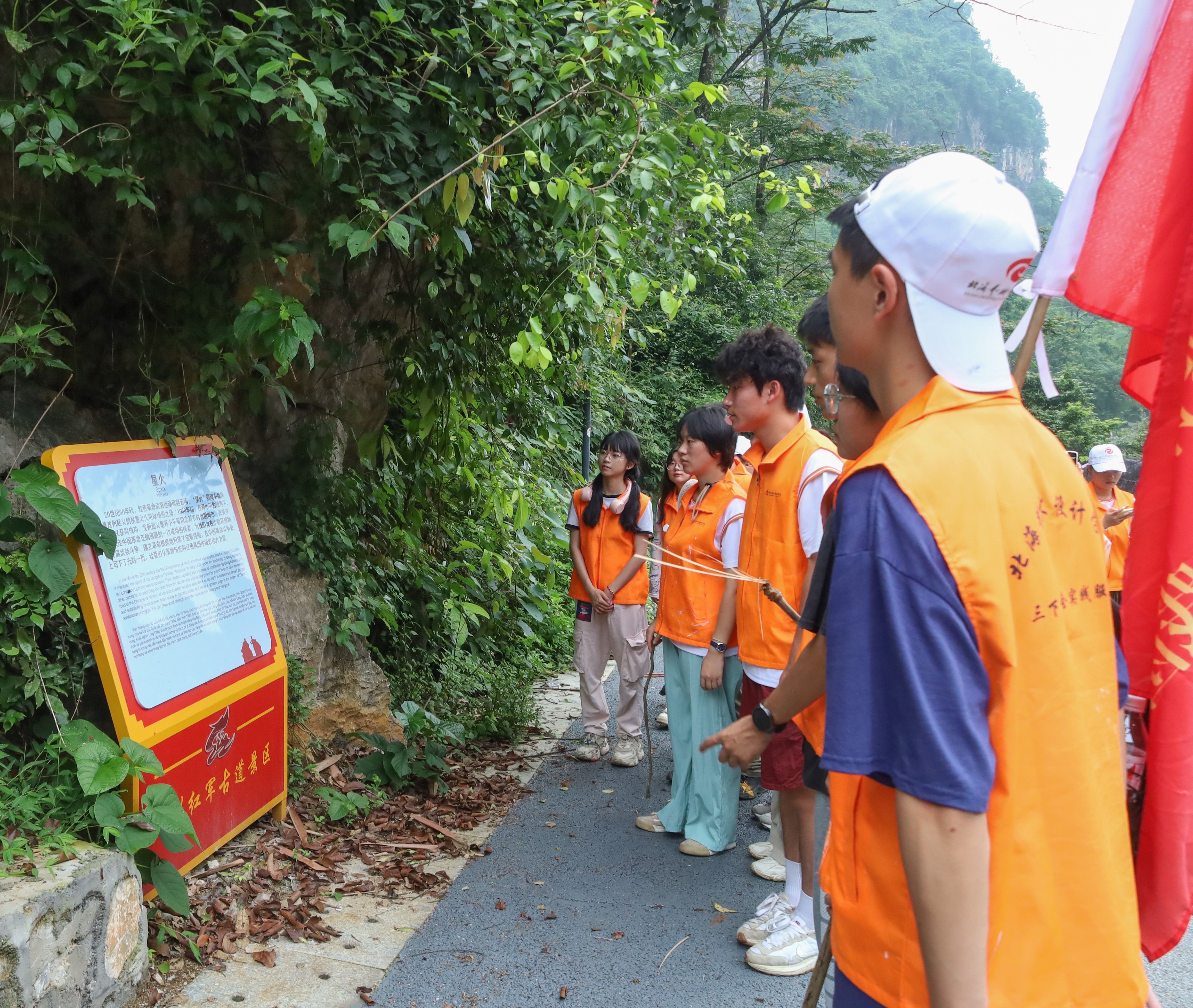 首先,爱国主义教育实践团重走红军路,在古道中追寻先辈足迹,重温红色记忆,在这条通往外省的咽喉要道中感受深厚的历史底蕴,了解红军第八军和左江革命的革命历史,铭记那段峥嵘岁月。