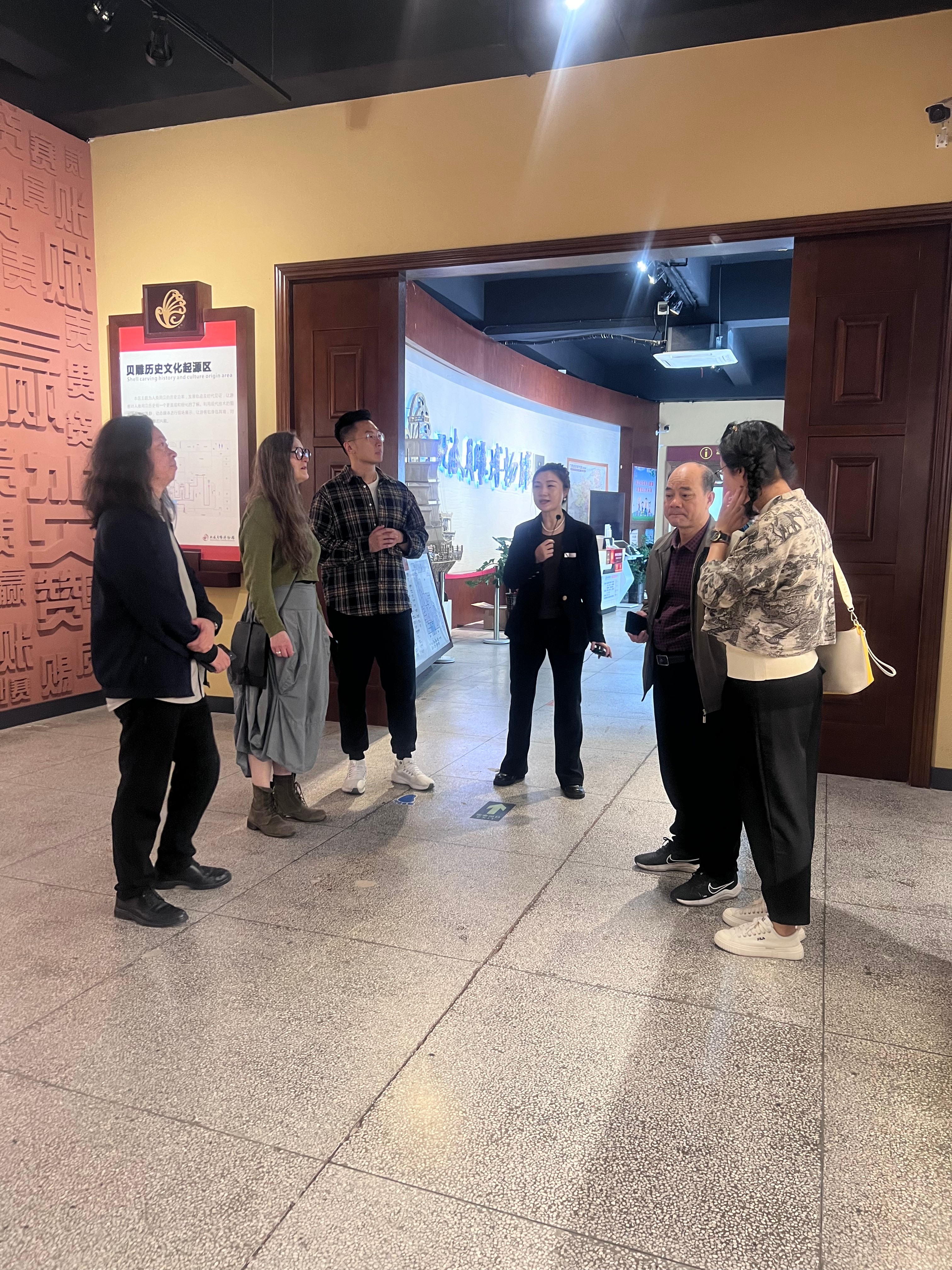 贝雕博物馆相关负责人热情接待了学校来访人员,并带领大家参观了贝雕博物馆和贝雕制作工作车间。在参观过程中,详细介绍了博物馆内极具观赏和收藏价值的作品,还展示了海洋中的“贝王”、精美的螺钿工艺以及精细的贝雕作品等馆藏珍宝,并深入讲解了贝雕制作的工艺流程,让学校领导和教师们对贝雕艺术有了更直观、更深入的了解。