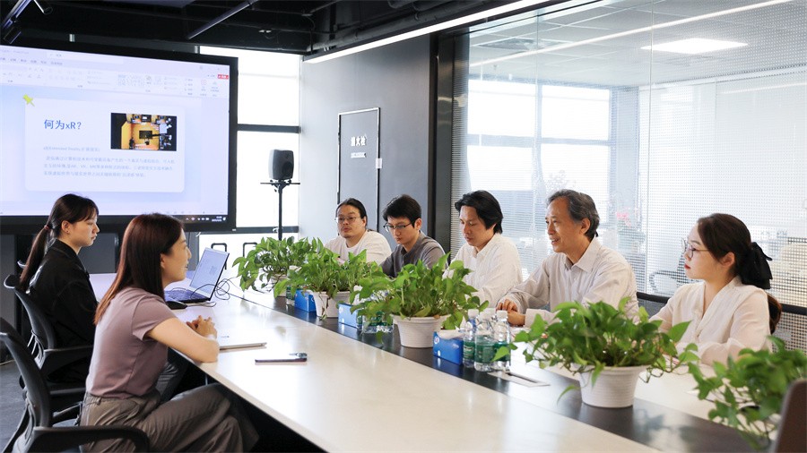 在星光影视集团虚拟制作负责人武敏的引领下,调研小组参观了 1200平米的VP演播大厅。现场高精度LED屏幕与动态追踪系统的演示,直观展现了虚拟制作技术在影视、直播、广告等领域的应用。该技术不仅能快速搭建虚拟场景、提升影视制作效率,还可模拟实操环境用于教育培训。其广泛的应用场景,凸显出虚拟技术人才的广阔就业前景,为学校专业培养方向提供了重要参考。