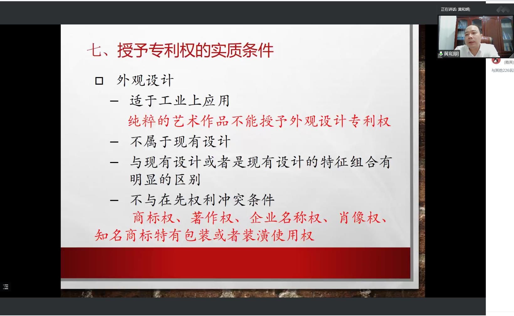 为进一步推动我校知识产权保护与专利申请工作有效开展,助力我校师生专利挖掘能力,保护科技创新成果。9月19日,广西知识产权发展中心主任黄和明为全校师生开展题为《知识产权基础知识与专利申请培训》线上专题讲座。讲座由科研处副处长蒋辉平主持,近300名师生共同参与了此次线上讲座。