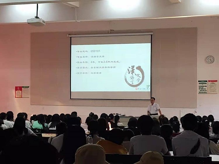 新学期,新起点,新征程。为加强我院汉语言文学专业的新生对本专业的了解,提高自我认知、合理规划大学生活。9月28日,我院召开了汉语言文学专业介绍会。此次会议由我院汉语言文学教研室副主任蔡森主持,我院汉语言文学专业学科带头人黄南津教授主讲,汉语言文学专业2021级全体新生出席了本次会议。