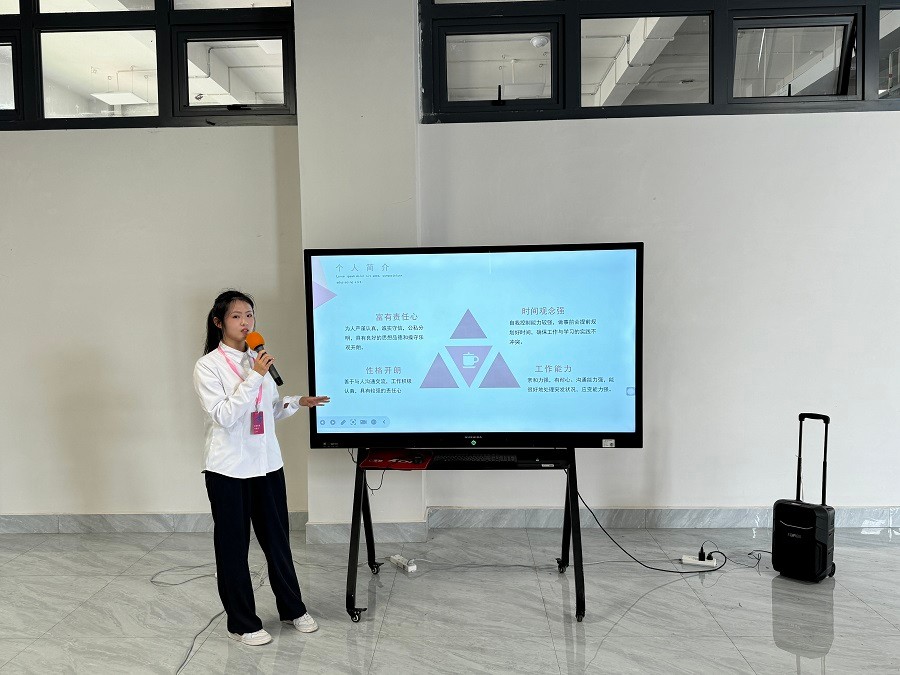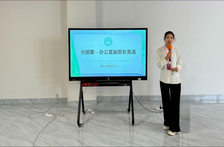 为确保竞选活动的公正性与透明度,竞选流程分为三个阶段:自主报名、教师考核、现场演讲,最终由师生代表组成的评审团综合考量候选人的工作能力、团队协作意识及创新思维等进行评选。各位候选人依次上台,围绕工作情况、工作规划等方面展开演讲,充分展现了竞选干部们积极向上的精神风貌。