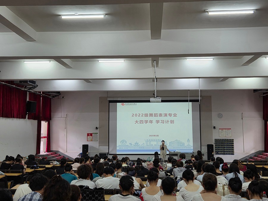 2025 年 5 月 30 日,舞蹈学院 2022级舞蹈表演专业上京动员会在西区公德楼 107 顺利举行学校副校长邱杰舞蹈学院常务副院长邓欢党支部书记宋慧敏等领导以及2022级舞蹈表演专业全体学生及辅导员共同参加此次动员会